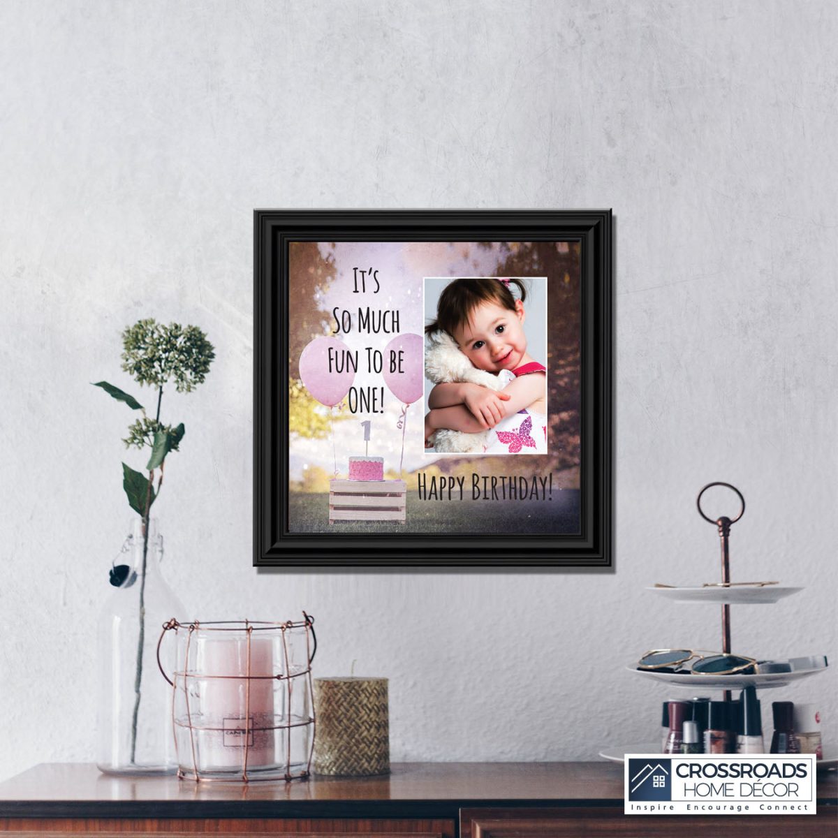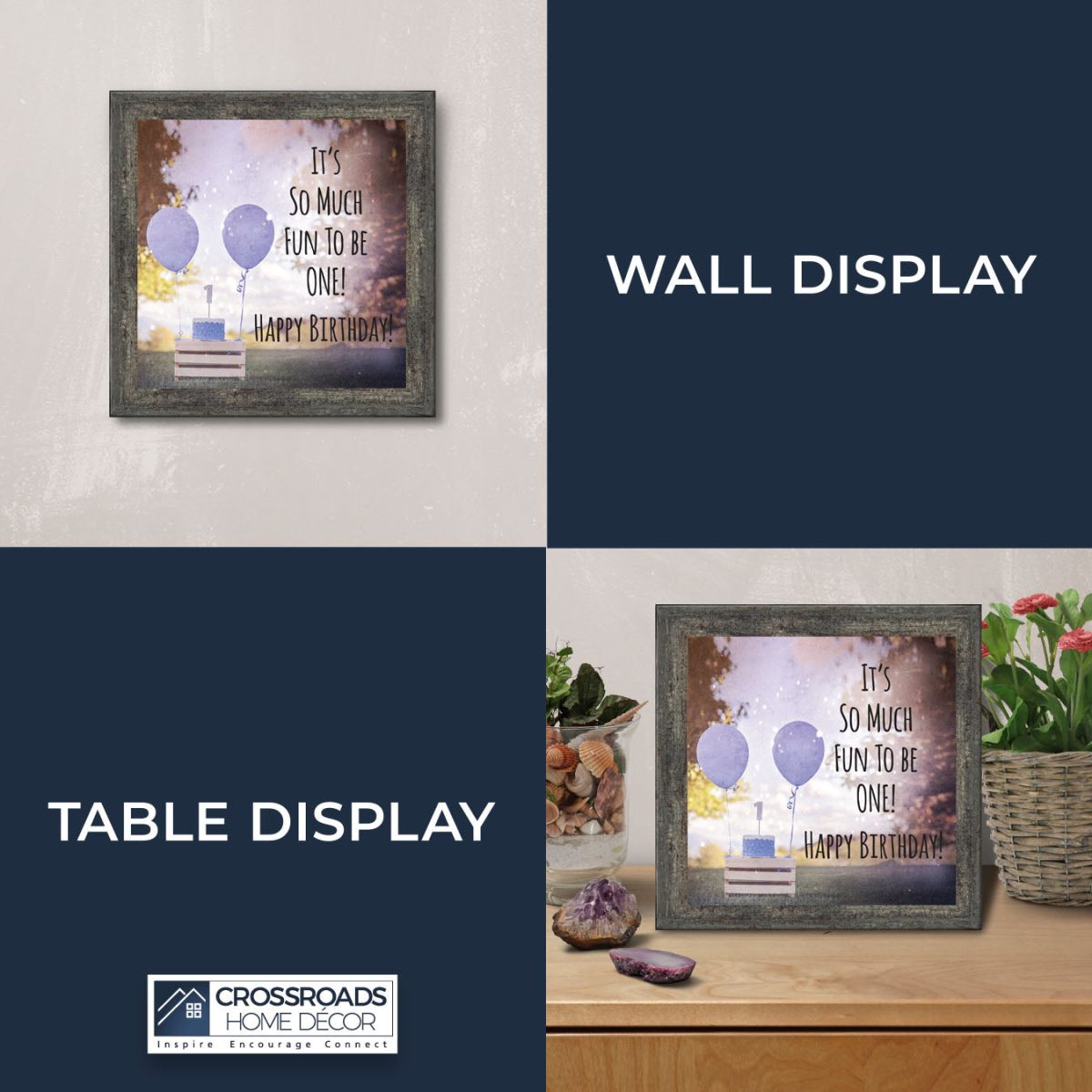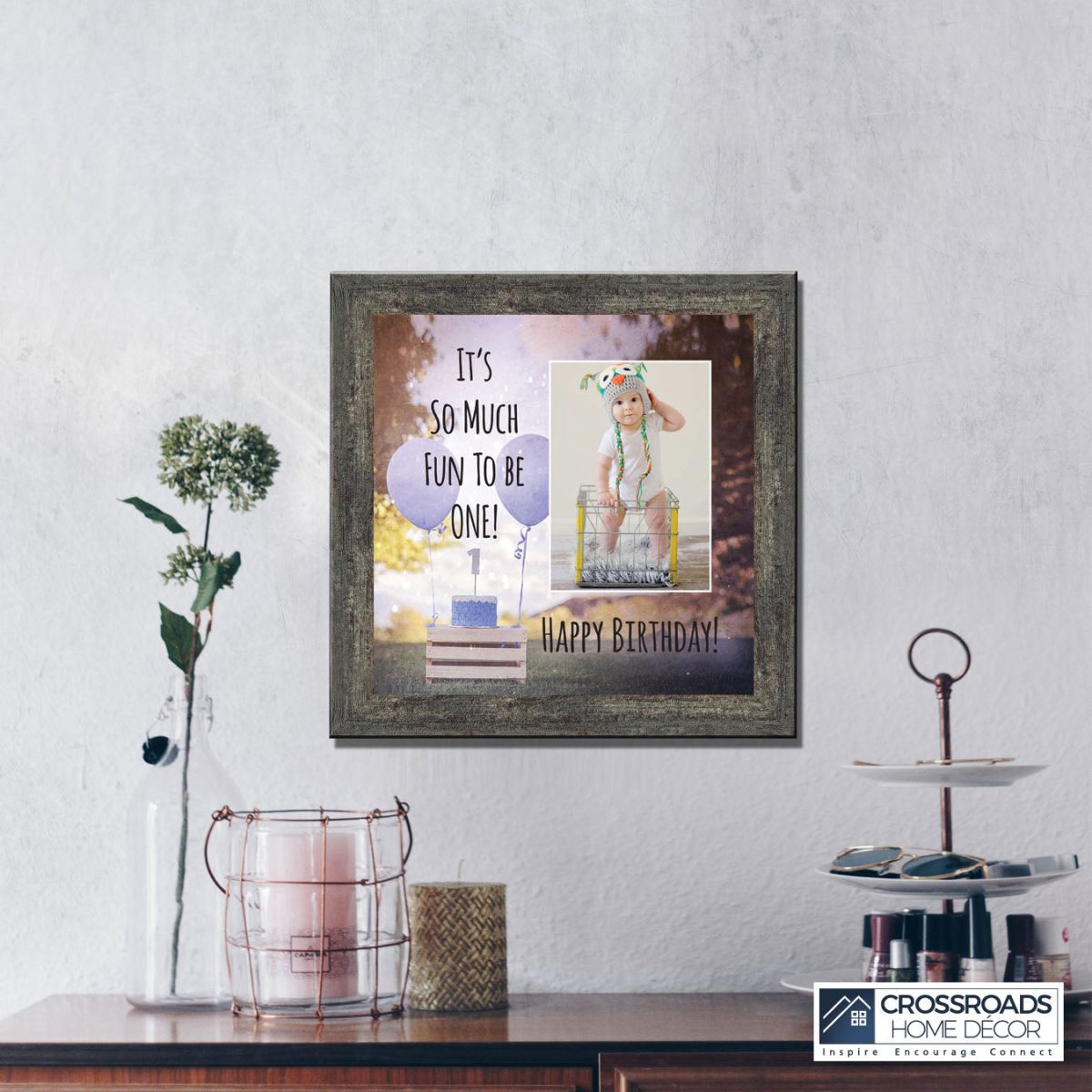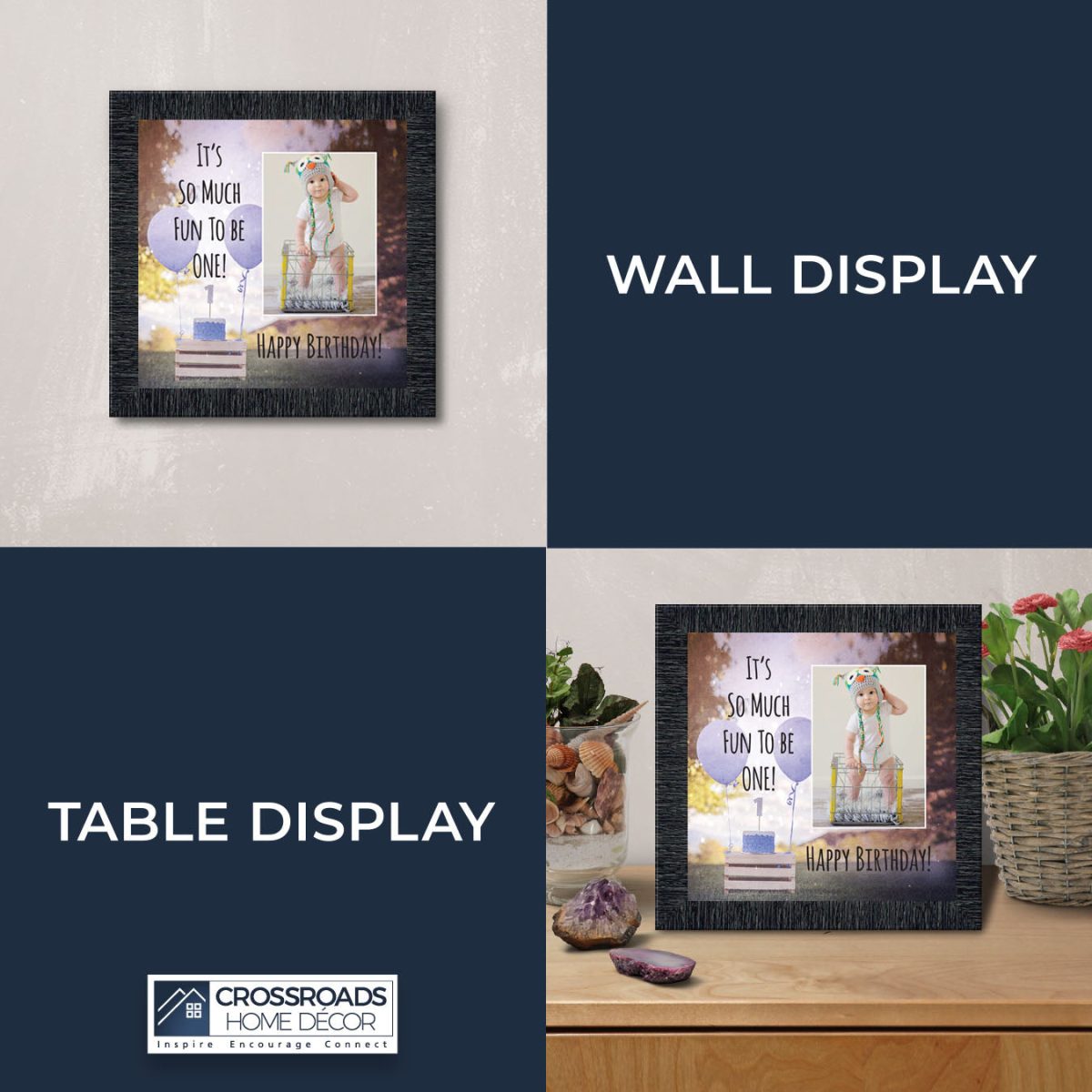 - Picture frame celebrating a baby boy’s first birthday. Great to use as a table decoration at the 1st birthday party and then add a picture to remember the fun day.