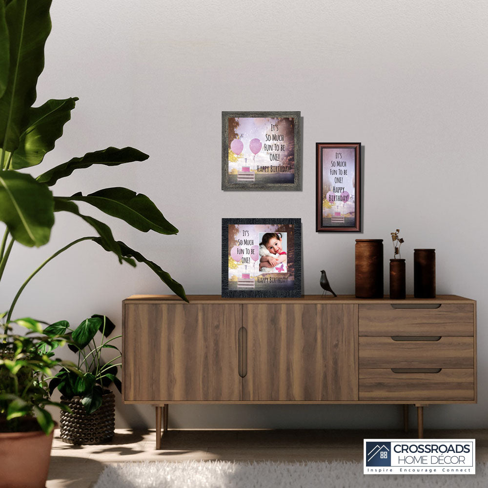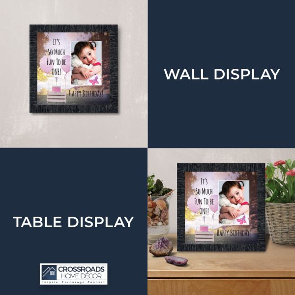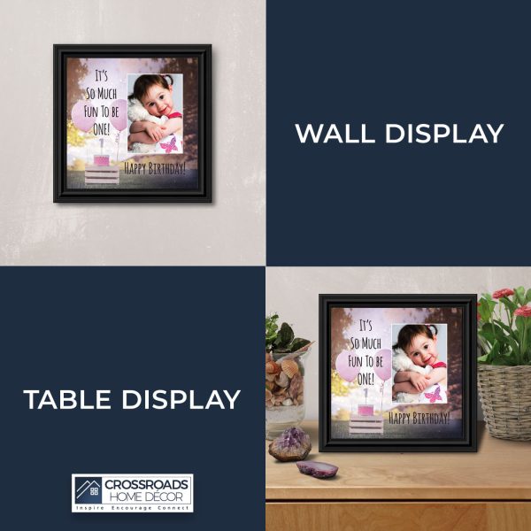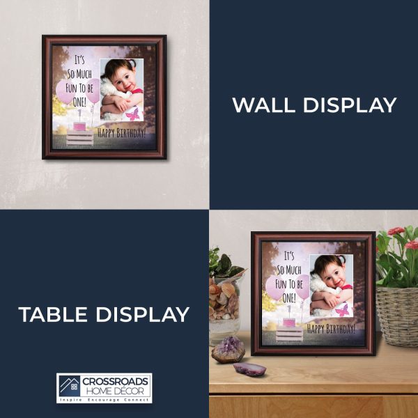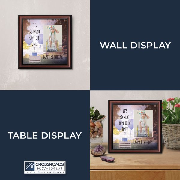 - Home decor personalized picture frame for wall or tabletop display. Includes glass front and easel back with wall hanger.