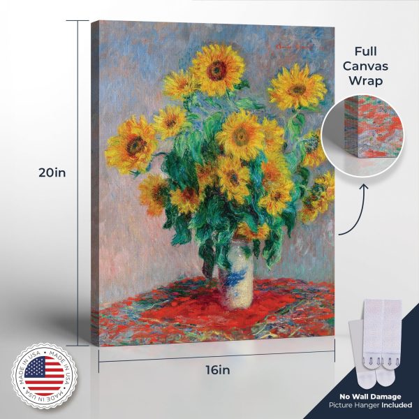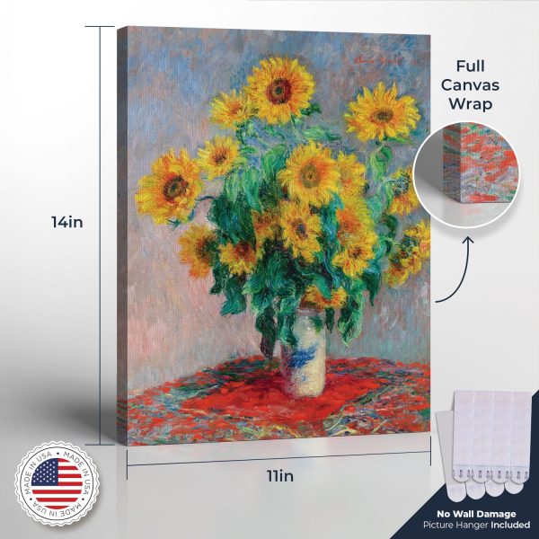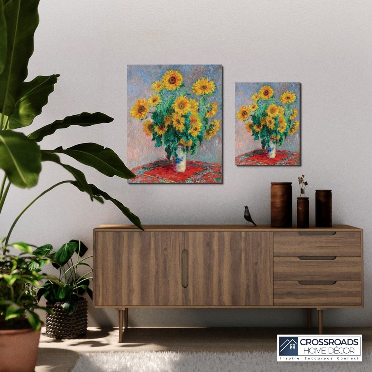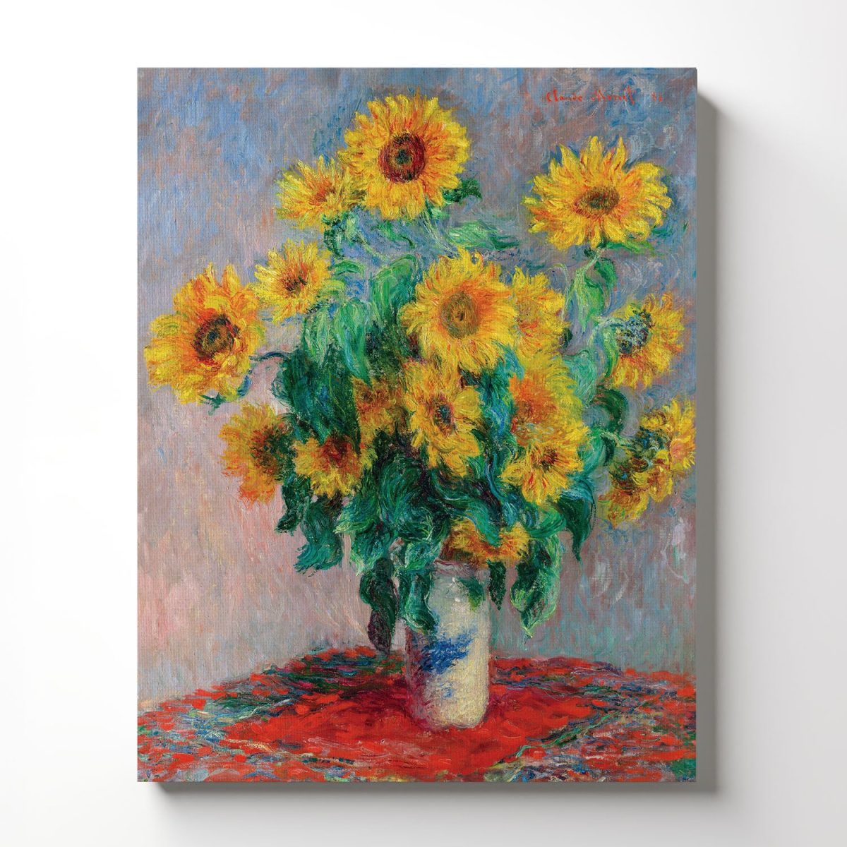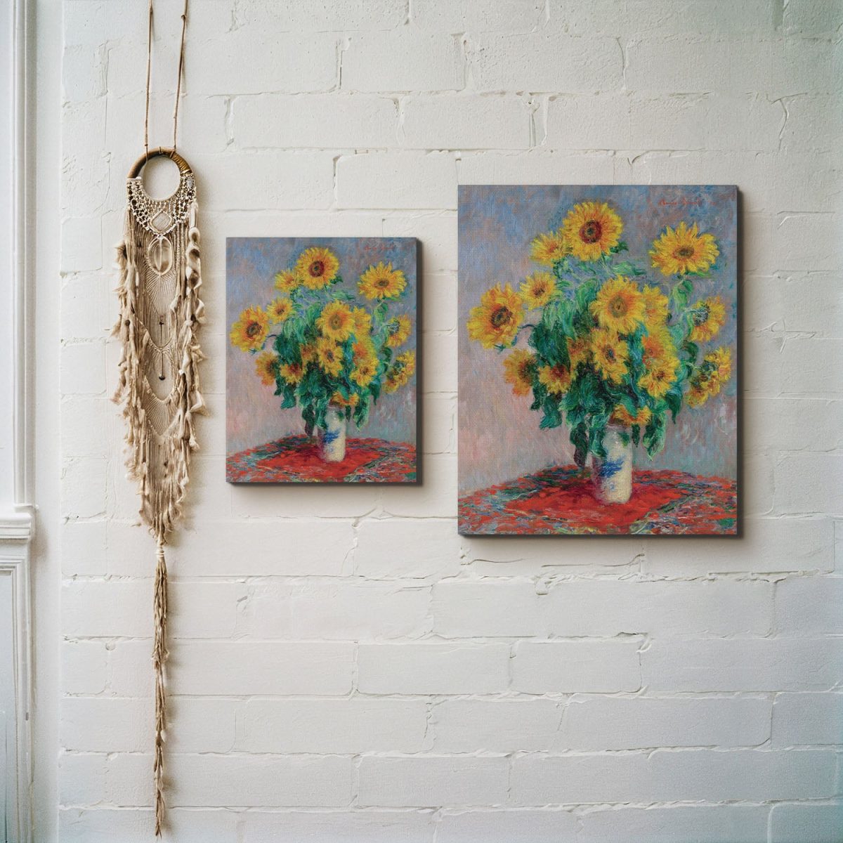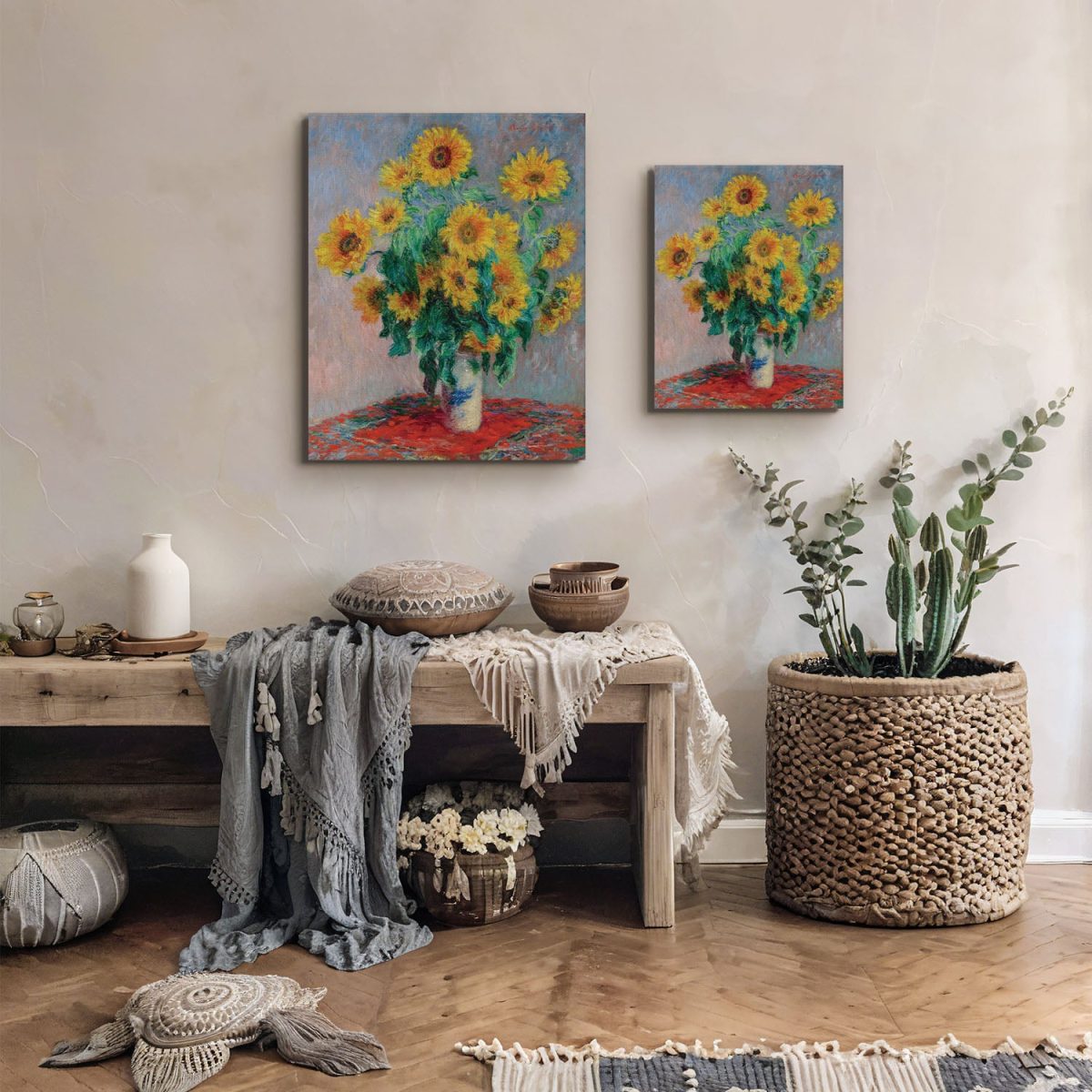 Experience the timeless elegance of Bouquet of Sunflowers, a symbol of happiness in Monet canvas wall art. This sunflower print beautifully complements canvas prints wall art, bringing the lively essence of sunflower painting wall art into your home or office, and adding a splash of color to your walls.
