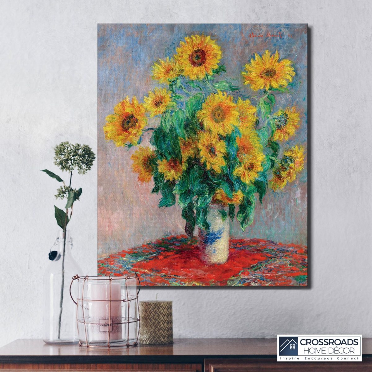 Crossroads Home Decor Bouquet of Sunflowers Canvas Print, Sunflower Wall Art, Monet Canvas Wall Art, Sunflower Canvas Wall Art, Sunflower Painting, Ready To Hang for Living Room Home Wall Decor