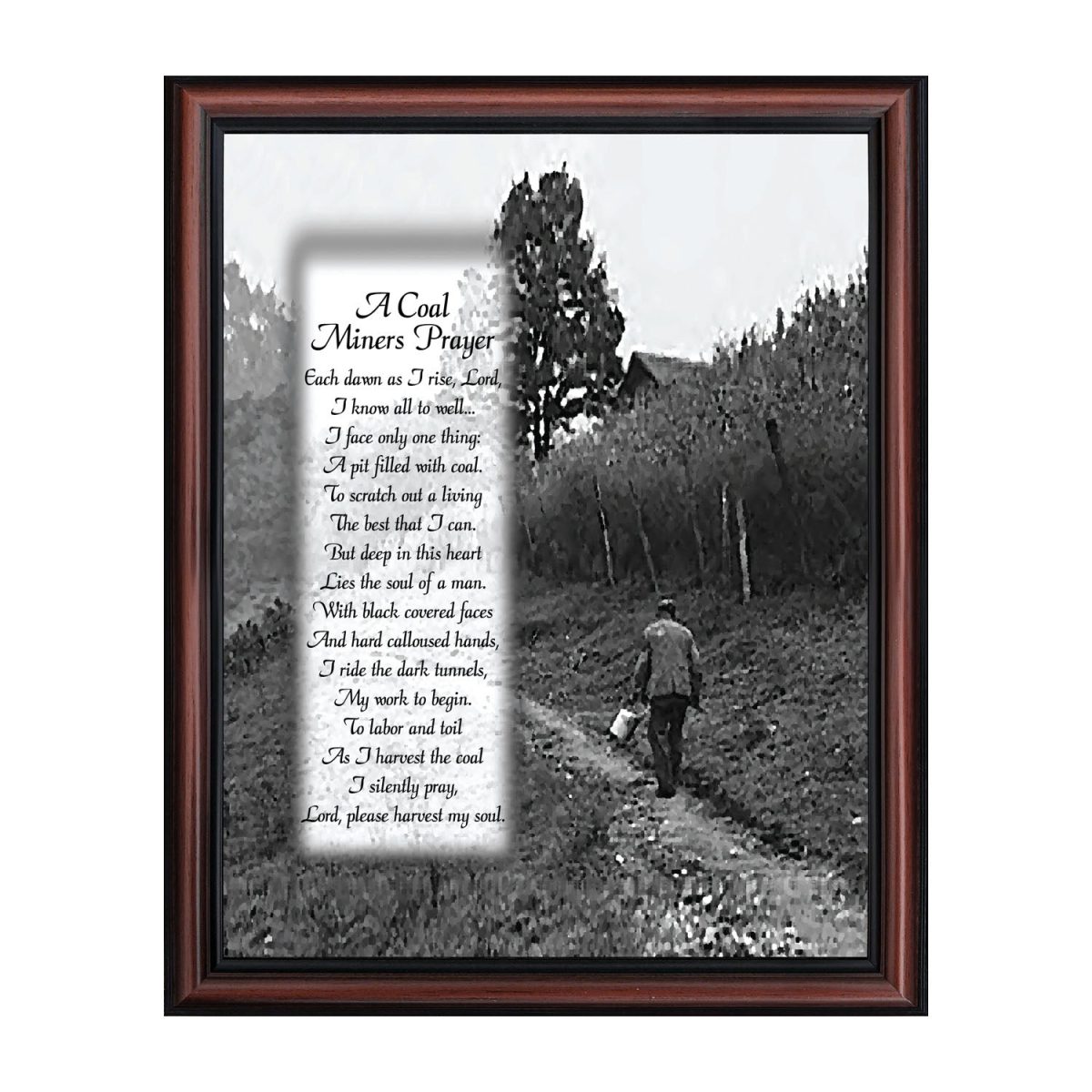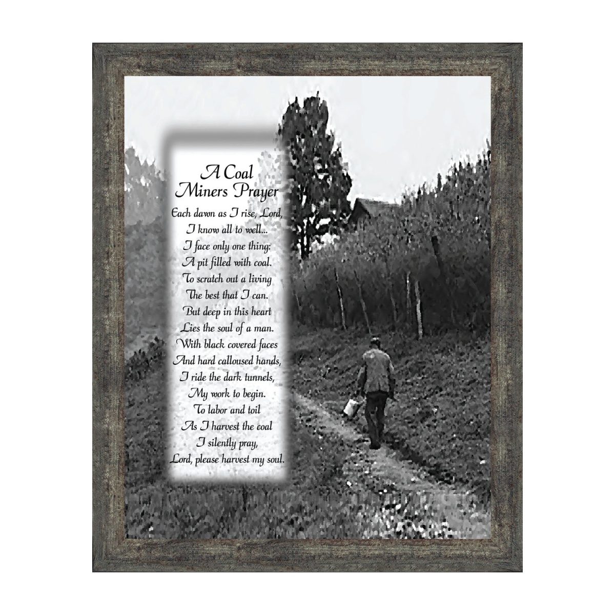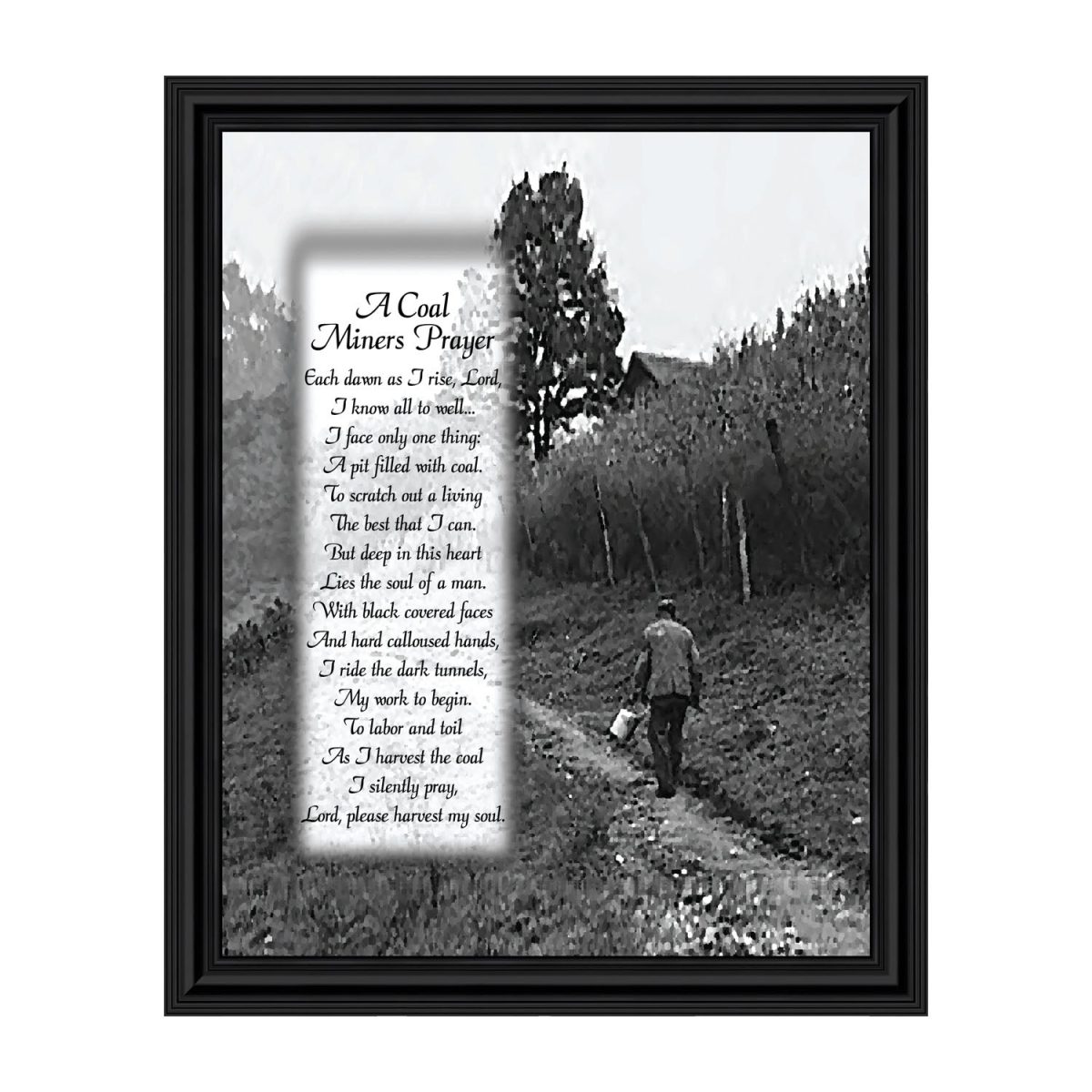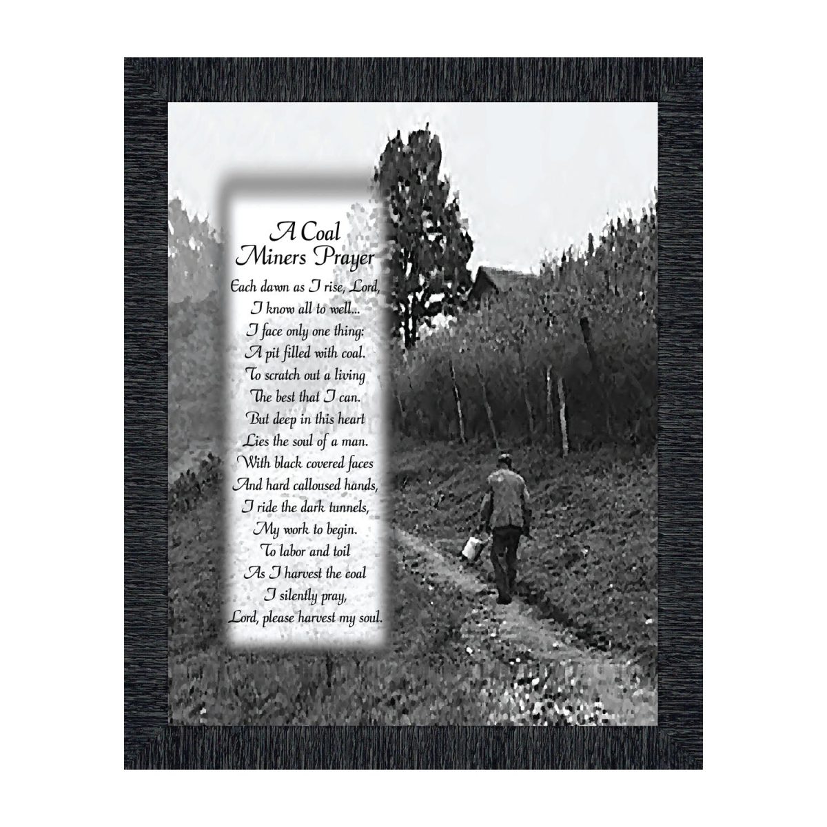 PICTURE FRAMED POEM about a coal miner’s prayer to bless his work and save his soul.