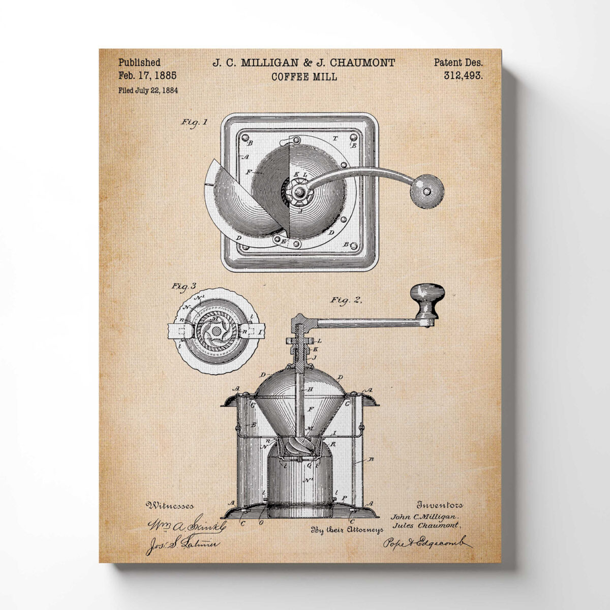 Coffee Bean Art, Patent Coffee Grinder Wall Art for Kitchen, Ready To Hang for Living Room Home Wall Decor, C2315b