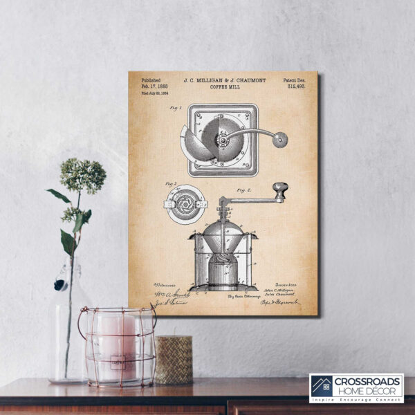 Crossroads Home Décor Coffee Bean Art, Patent Coffee Grinder Wall Art for Kitchen, Ready To Hang for Living Room Home Wall Decor
