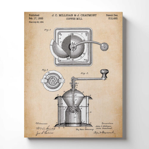 Coffee Wall Art, Coffee Pictures Wall Decor, French Patent Press Canvas Print, Ready To Hang for Living Room Home Wall Decor, C2331