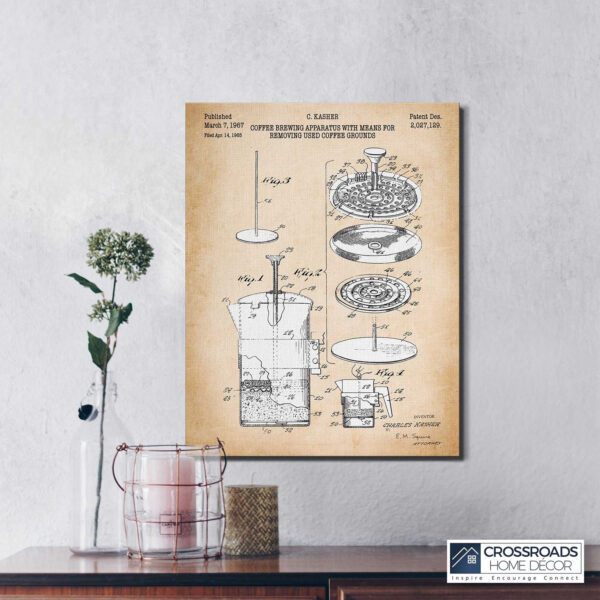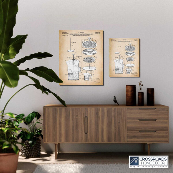 Crossroads Home Décor Coffee Wall Art, Coffee Pictures Wall Decor, French Patent Press Canvas Print, Ready To Hang for Living Room Home Wall Decor