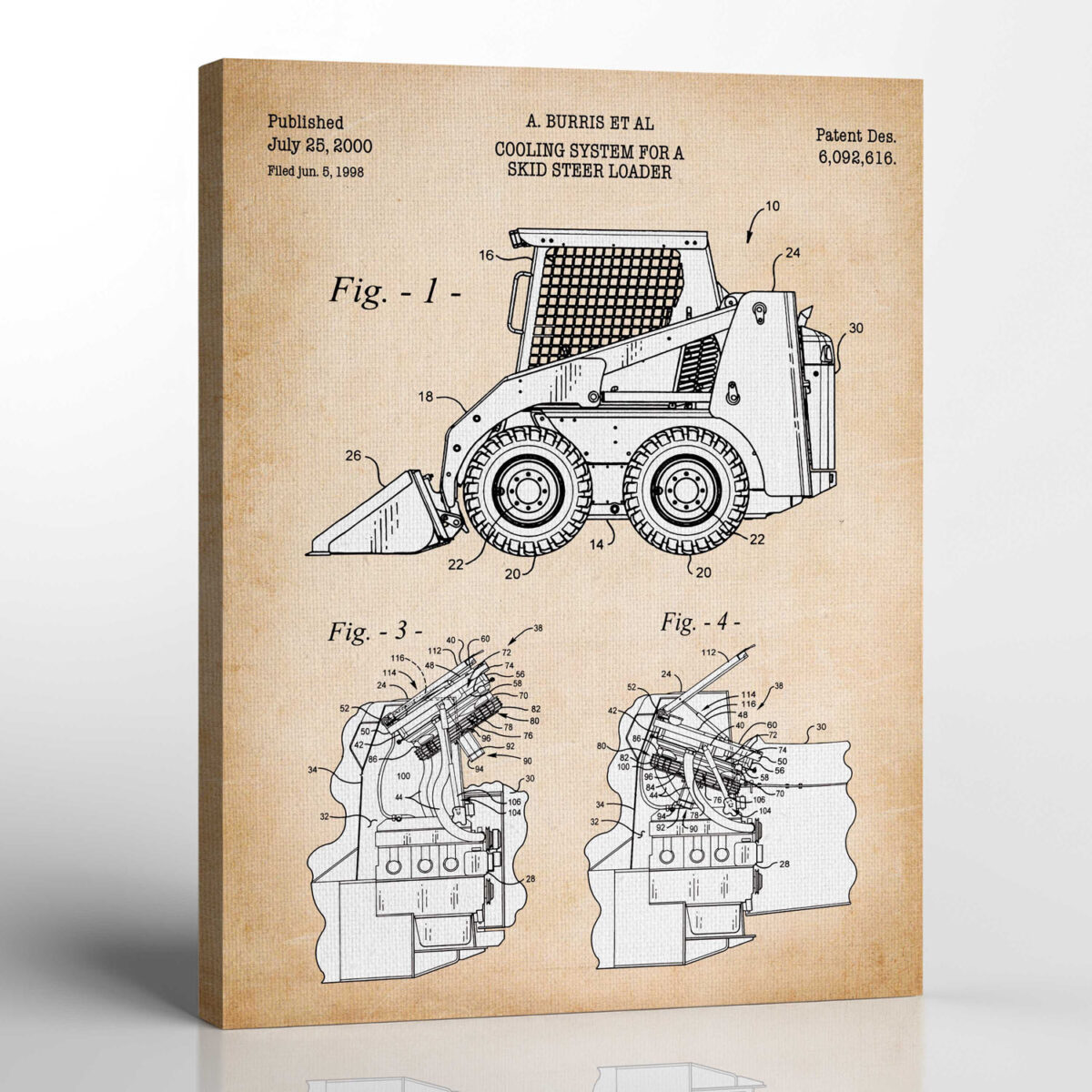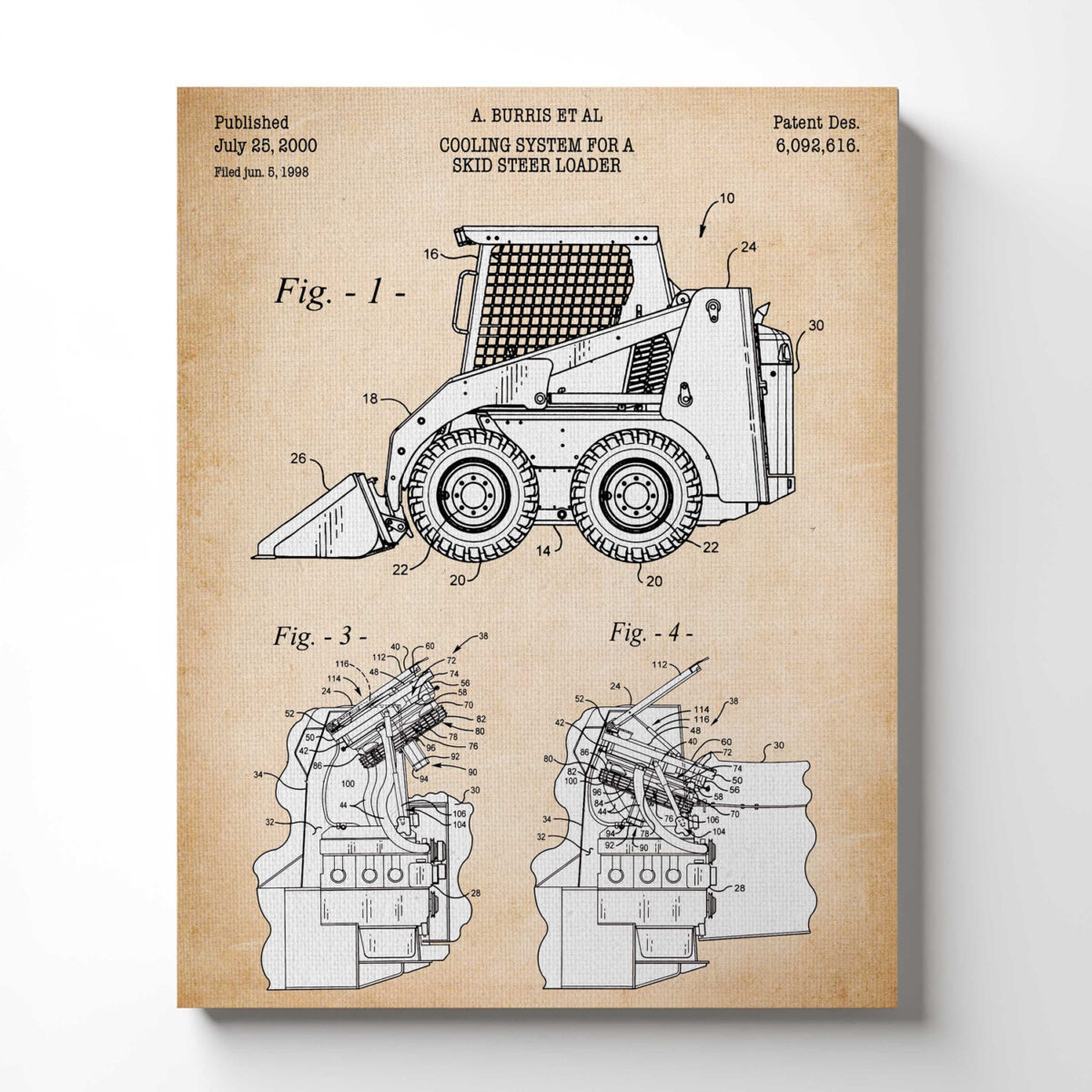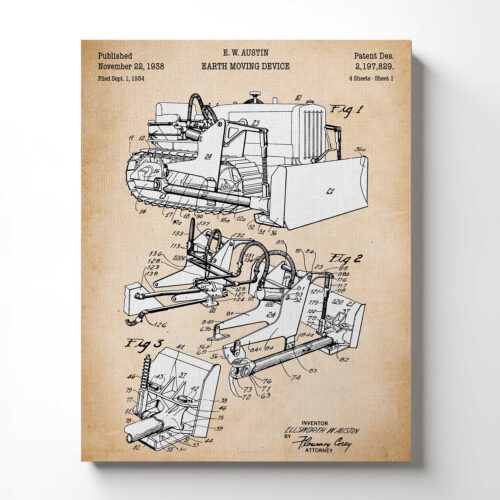 Construction Vehicles, Bobcat Patent Canvas Print, Ready To Hang for Living Room Home Wall Decor,C2532