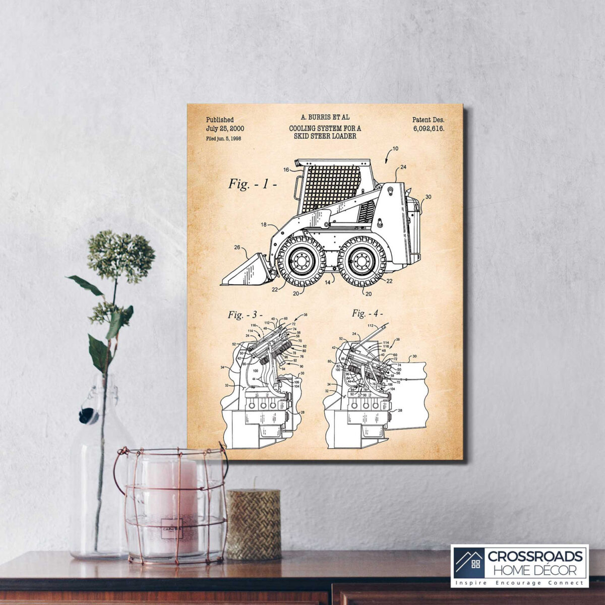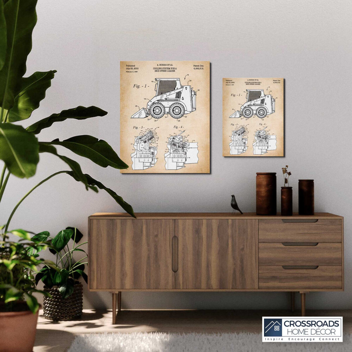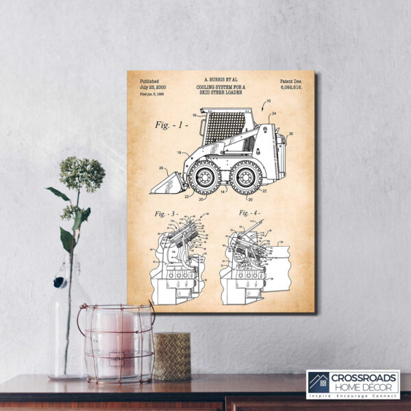Crossroads Home Décor, Construction Vehicles, Bobcat Patent Canvas Print, Ready To Hang for Living Room Home Wall Decor