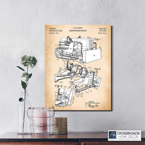 Crossroads Home Décor, Cool Gifts for Construction Workers, Bulldozer Patent Canvas Print, Ready To Hang for Living Room Home Wall Decor