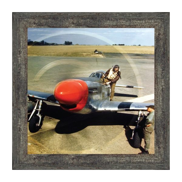 - Pilot standing on the wing of his P-51 Mustang, ready to get into the cockpit. His crew chief stands by. Great gift for Veterans Day, Independence Day, or for any military personal. History of aviation.