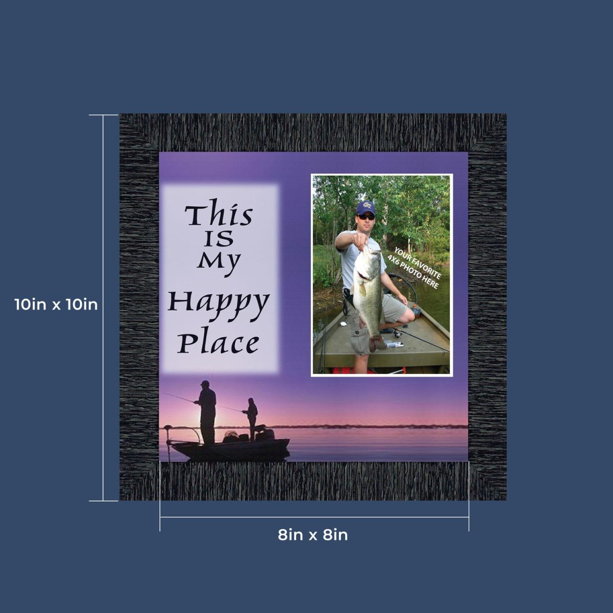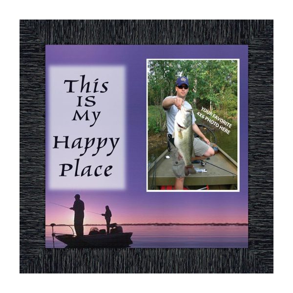 Fishermans Happy Place, Fishing Gifts, Beach, Boating or Fishing Decor, Personalized Picture Frame, 10X10 9722