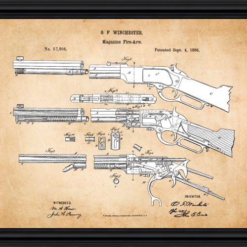 BRING DISTINCTIVE DESIGN to any room with this classic patent print. Choose from our complementary framing styles of Black, Barnwood, Charcoal, or Walnut to enhance the pictures aesthetic value and blend with your current decor. Our real glass covering provides protection and enables the art to be displayed in any room and in high traffic areas.