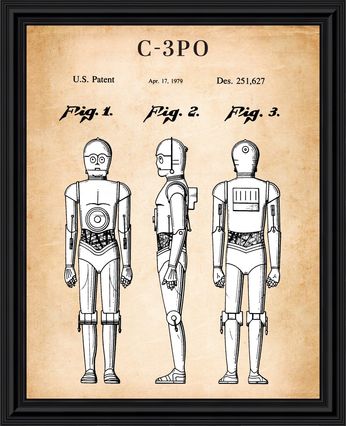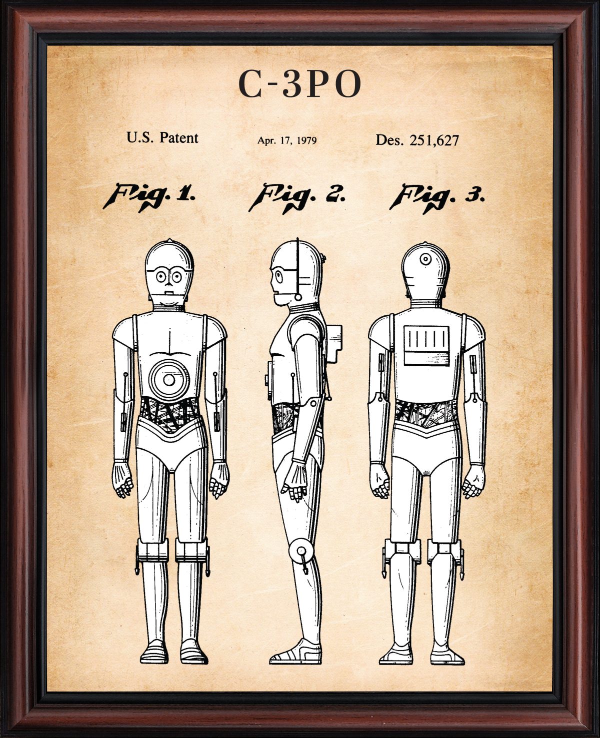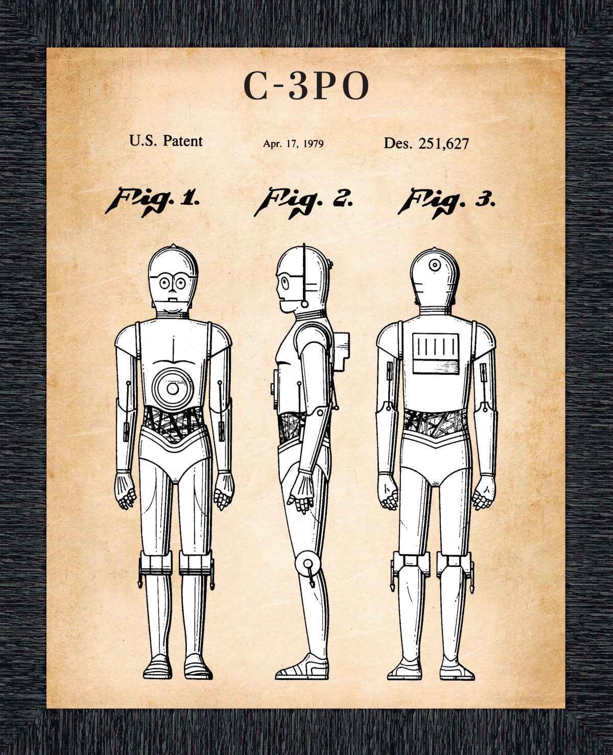 GREAT STAR WARS DECOR! Add this unique patent print of Star Wars droid robot R2-D2 and C-3PO as well as Ewoks and Yoda to your living room, bedroom or office decor. Birthday or Christmas gift idea for the Star Wars Collector.