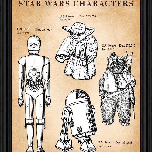 Crossroads Home Decor Star Wars Characters; Yoda, R2-D2, C-3PO and Ewoks Patent Print, Star Wars Gift for Men, Great Addition to Your Star Wars Collection