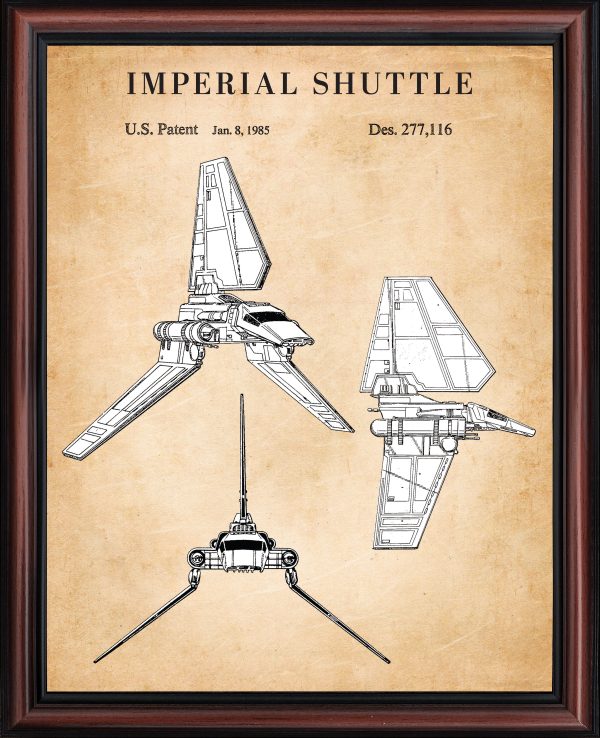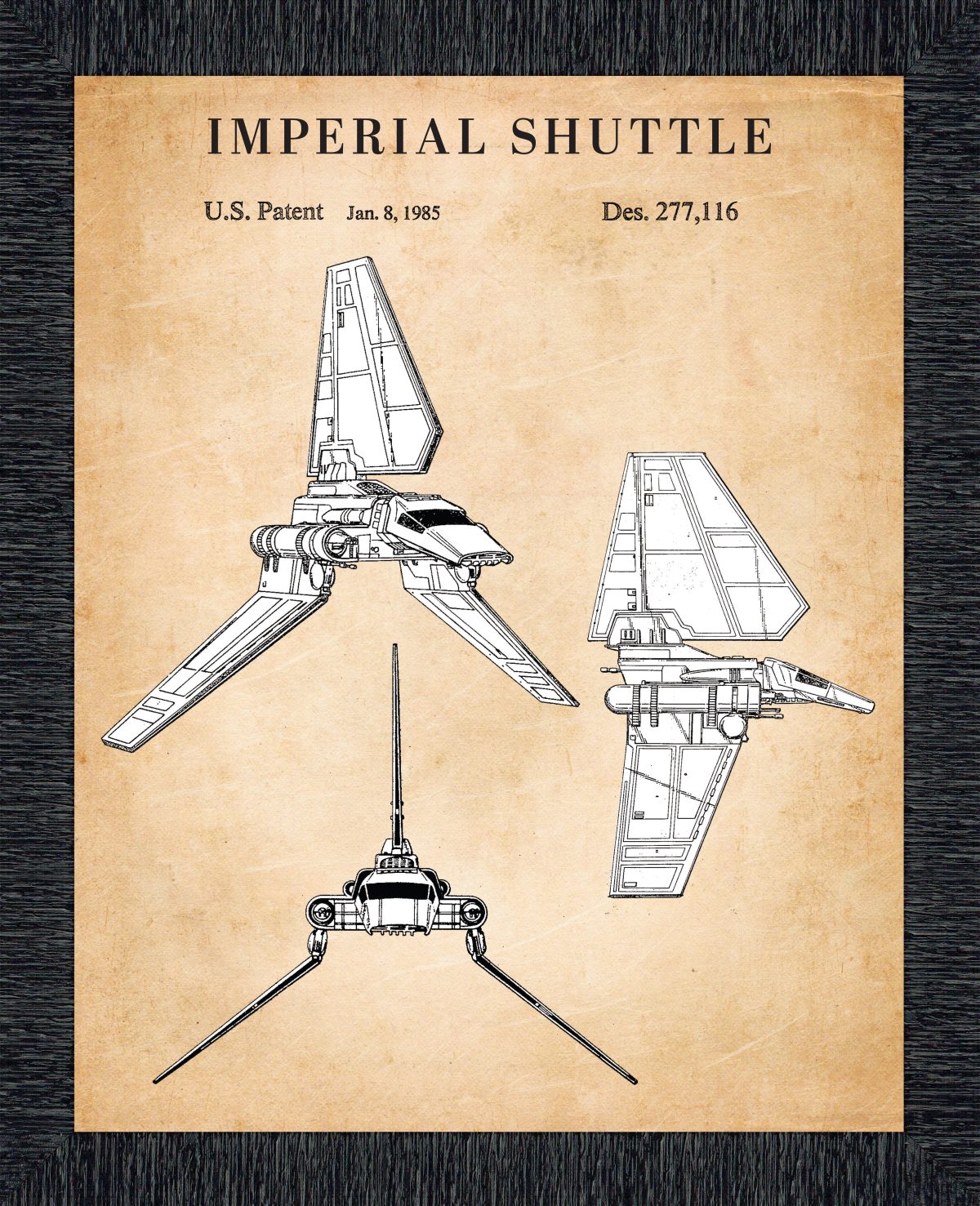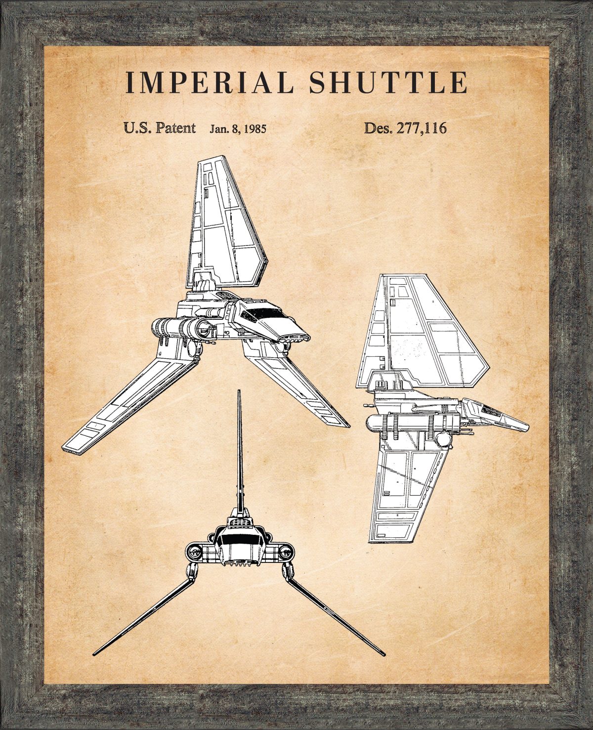 RELIVE THE ACTION of the Star Wars Epic with the Imperial Shuttle Design Patent picture. Imagine Darth Vader coming out of the Shuttle to confront Luke Skywalker. Birthday or Christmas gift idea for the Star Wars Collector.