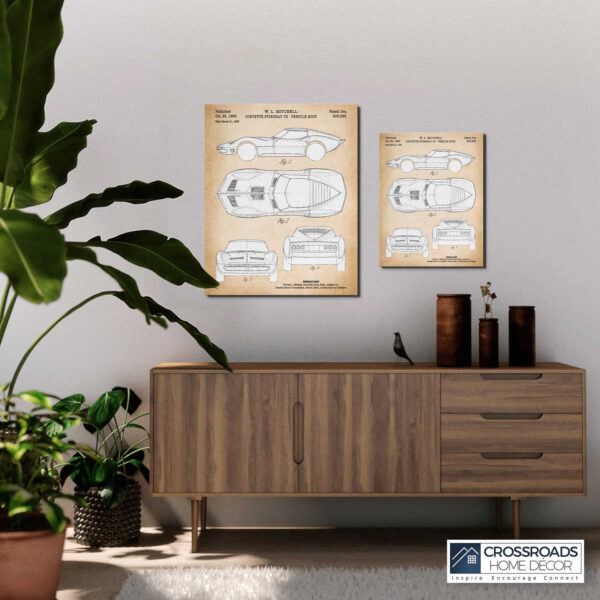 Crossroads Home Décor, Corvette Wall Art, Corvette Stingray Poster, Stingray Patent Canvas Print, Ready To Hang for Living Room Home Wall Decor