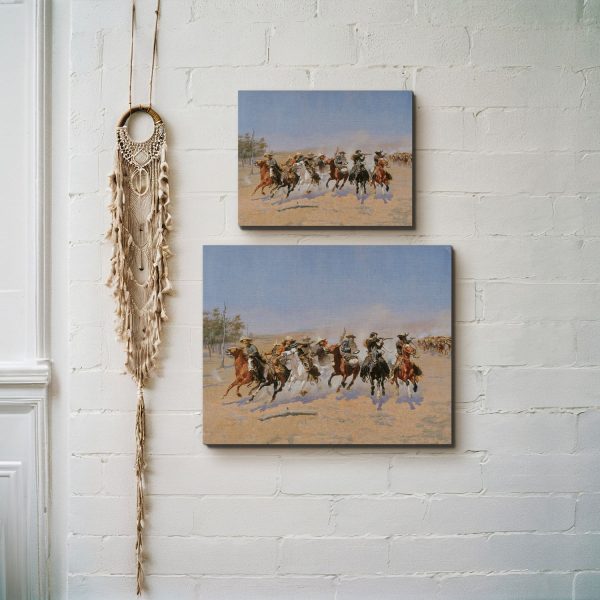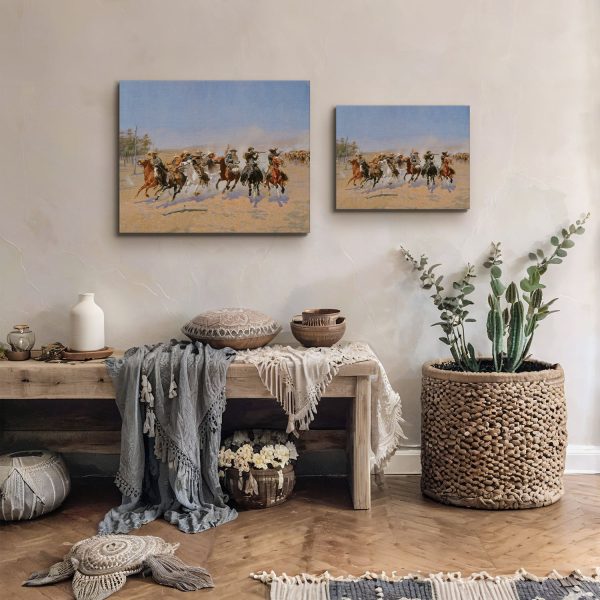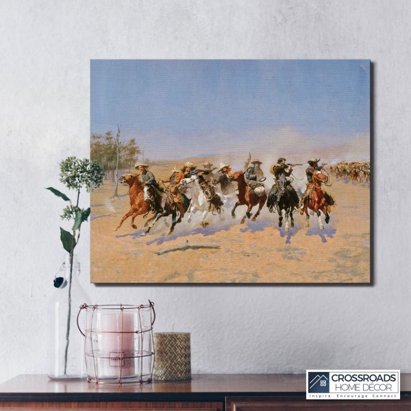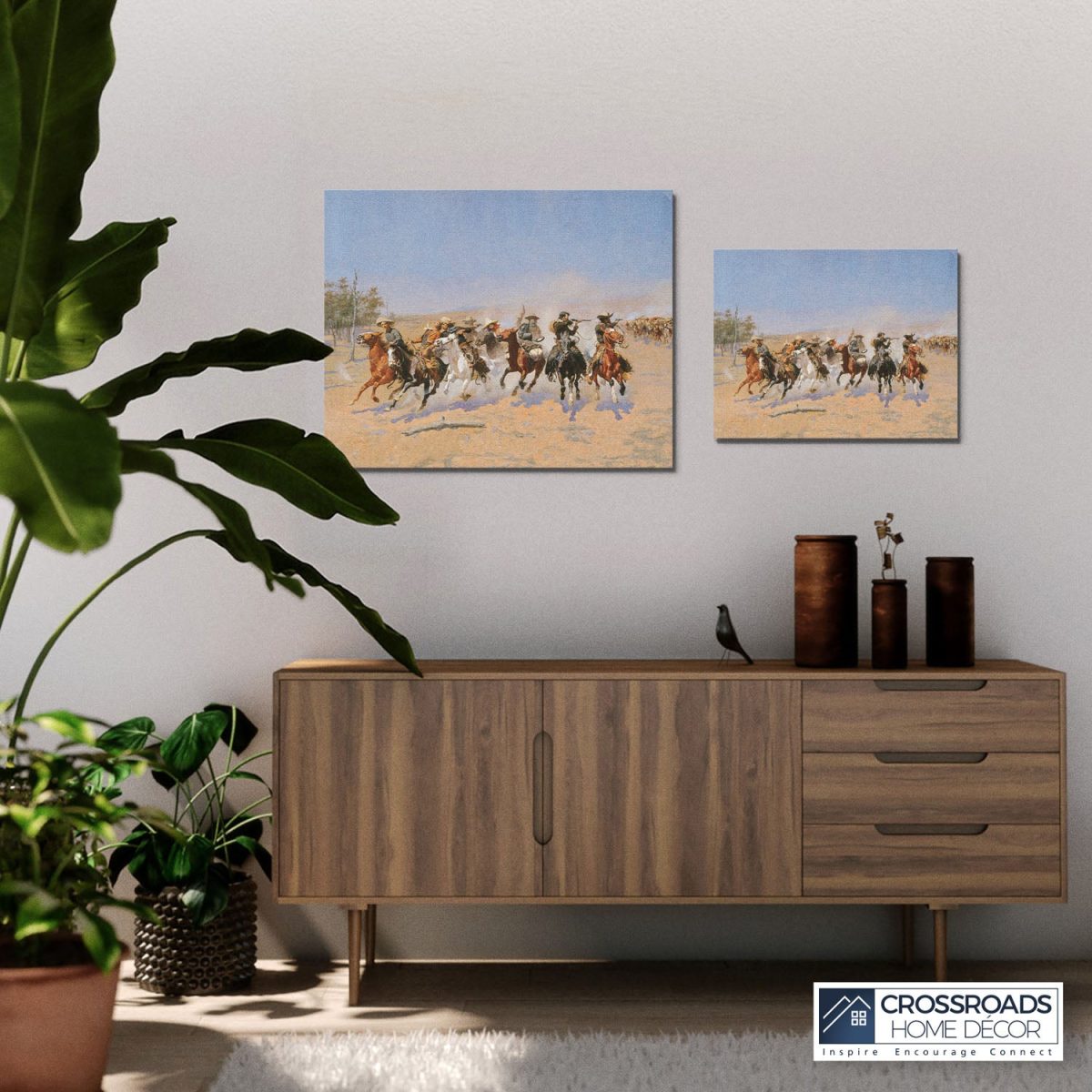 Elevate your home with the timeless appeal of western art. Our Dash for the Timbers canvas print brings the beauty and drama of the frontier to life, making it a stunning addition to any room that appreciates the rich heritage of cowboy wall decor.