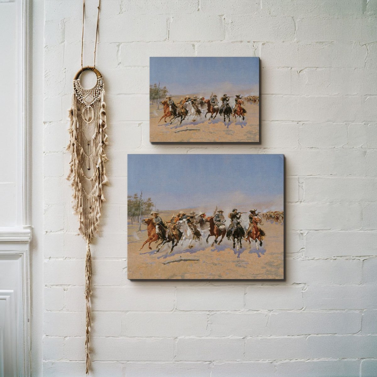 Cowboy Decor, Dash To The Timbers by Frederic Remington Canvas Print, Wester Wall Art, Western Art Cowboy Wall Decor, Ready To Hang for Living Room Home Wall Decor, C2425