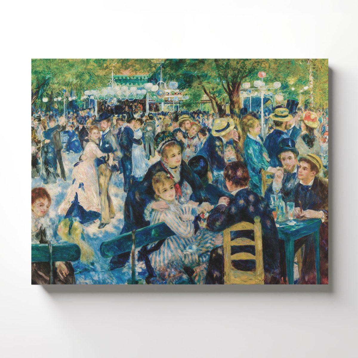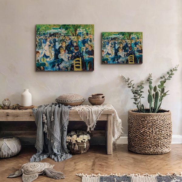 Immerse yourself in the vibrant, joyous scene of Dance at Le moulin de la Galette with our canvas print, a stunning representation of famous paintings wall art. Captured by the masterful Renoir, this piece brings the lively atmosphere of Parisian social life into your home, making it an essential addition for lovers of dance wall art.
