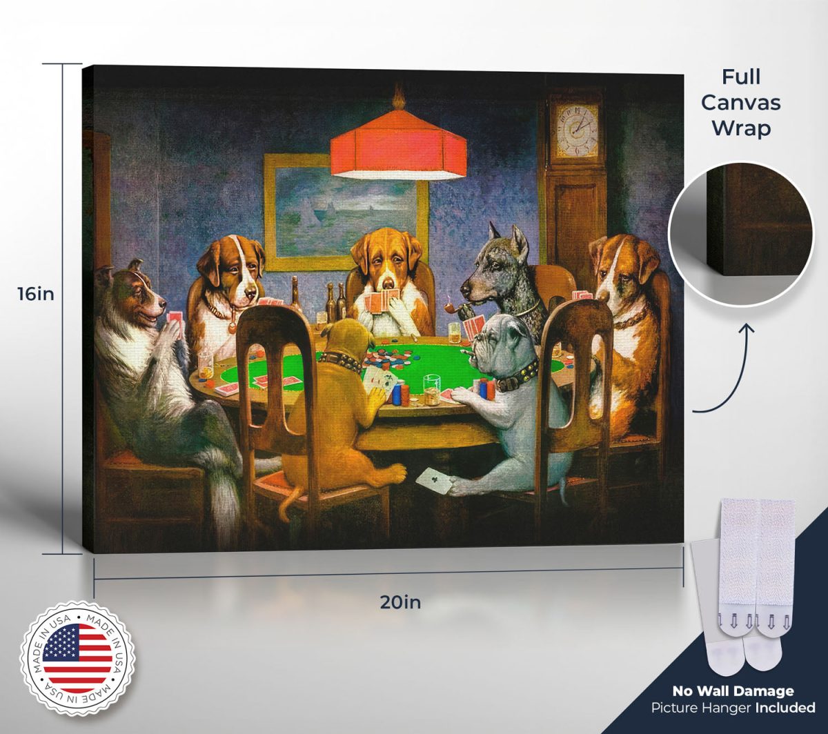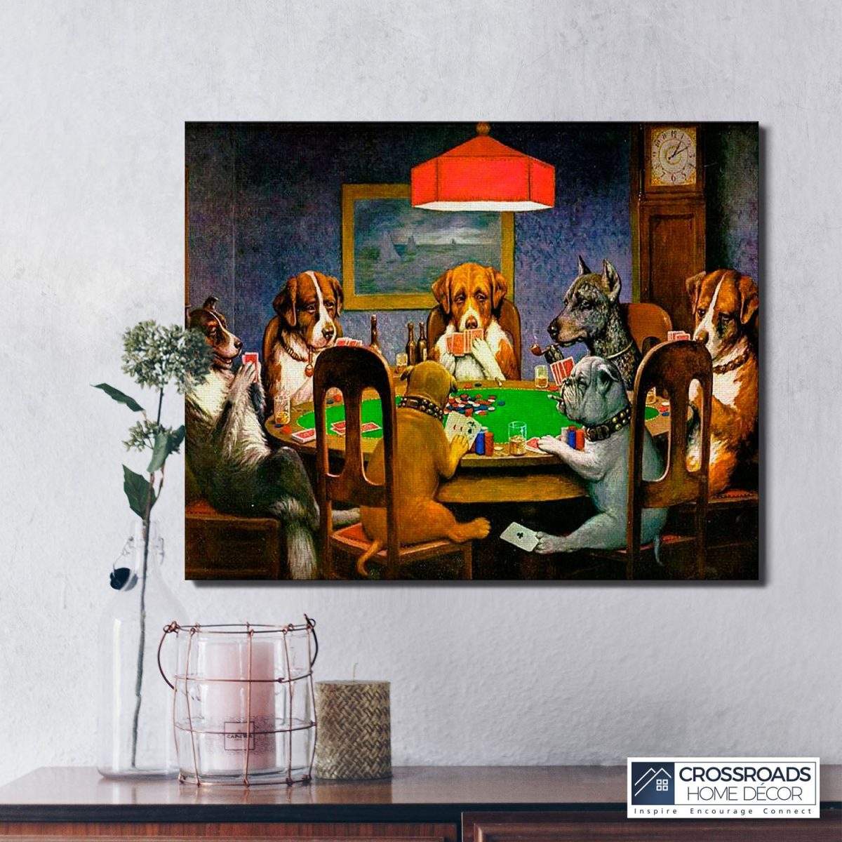 Crossroads Home Decor Dogs Playing Poker Canvas Frame by Cassius Marcellus Coolidge, Dogs Playing Cards, Playing Cards Wall Art, Ready To Hang for Living Room Home Wall Decor, Ready To Hang for Home Decor