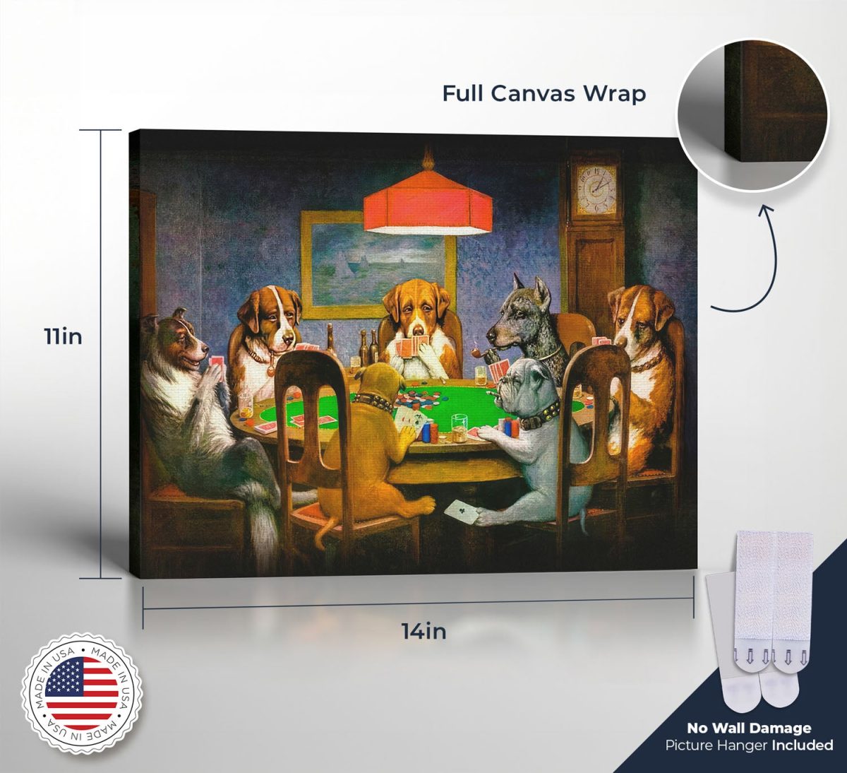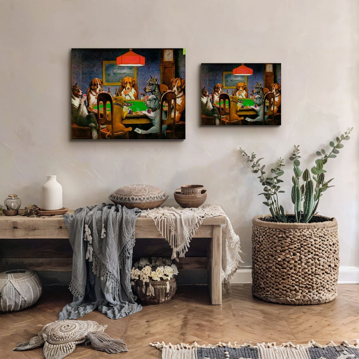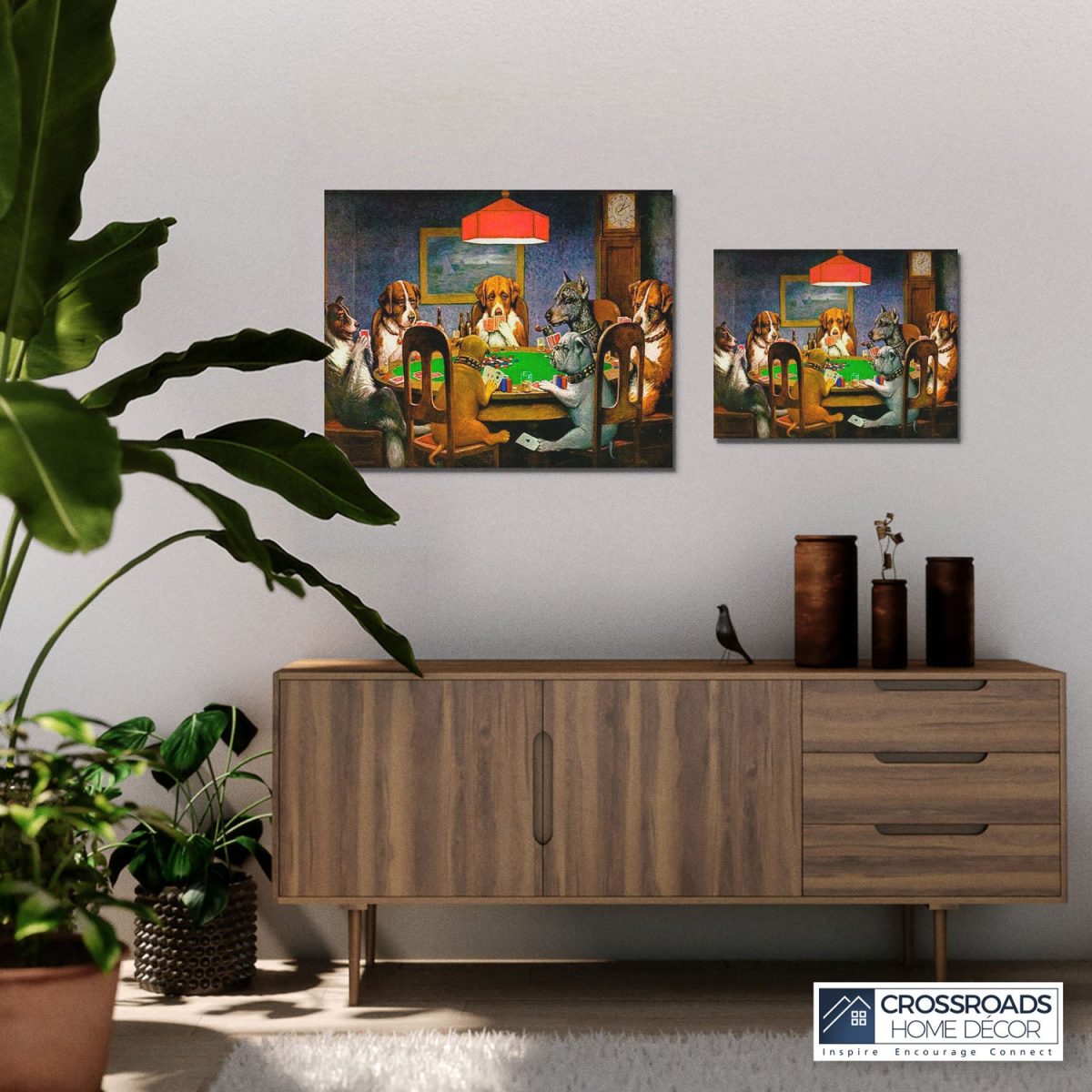 Transform your living space with this Playing Cards Wall Art. The Dogs Playing Poker Canvas is not only an iconic image but also a humorous and charming addition to any room, blending well with both modern and traditional decors.