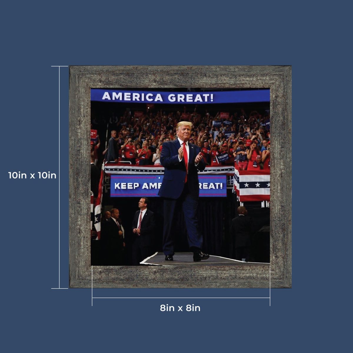 Donald Trump at a Republican Rally for the 2020 Campaign, Keep America Great in the Background, Framed Print of President, 10×10 8756