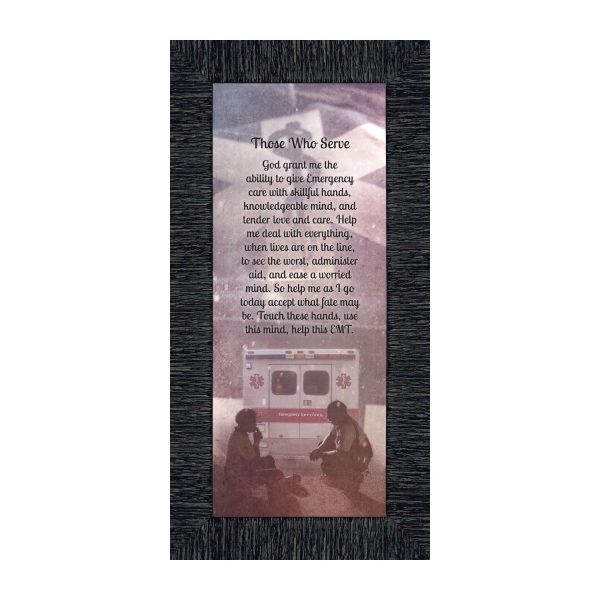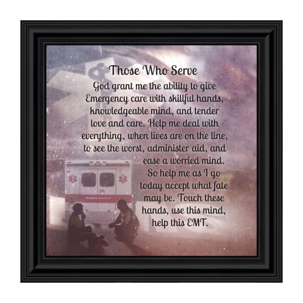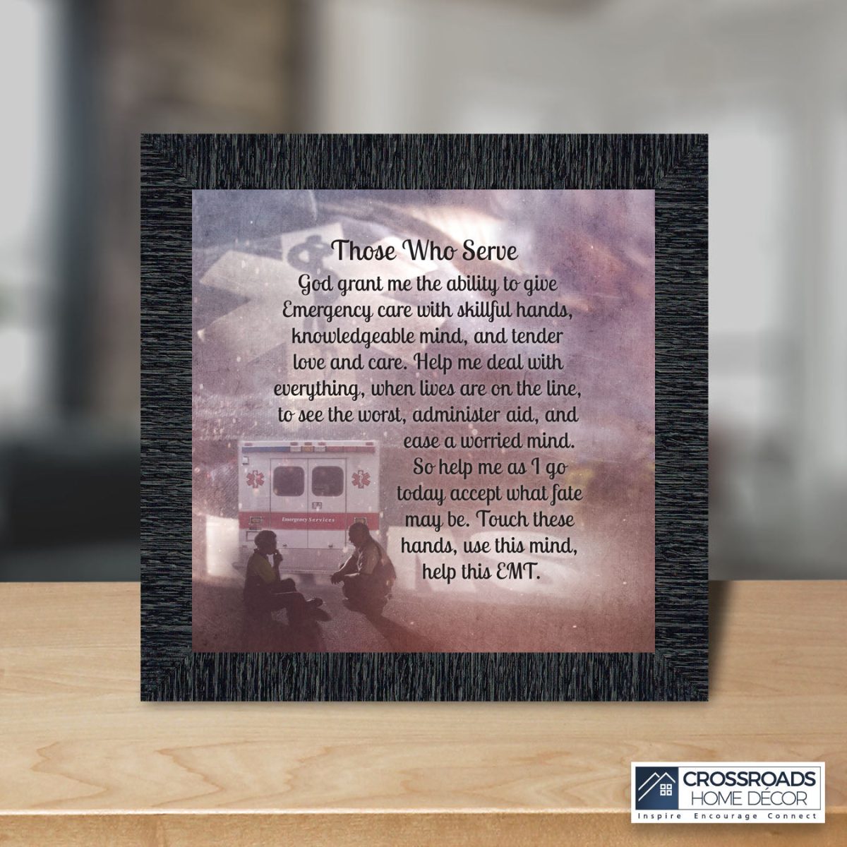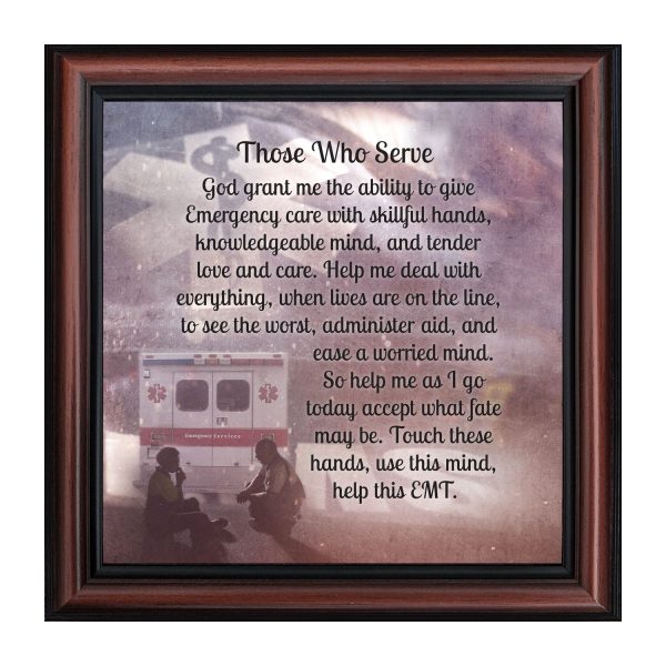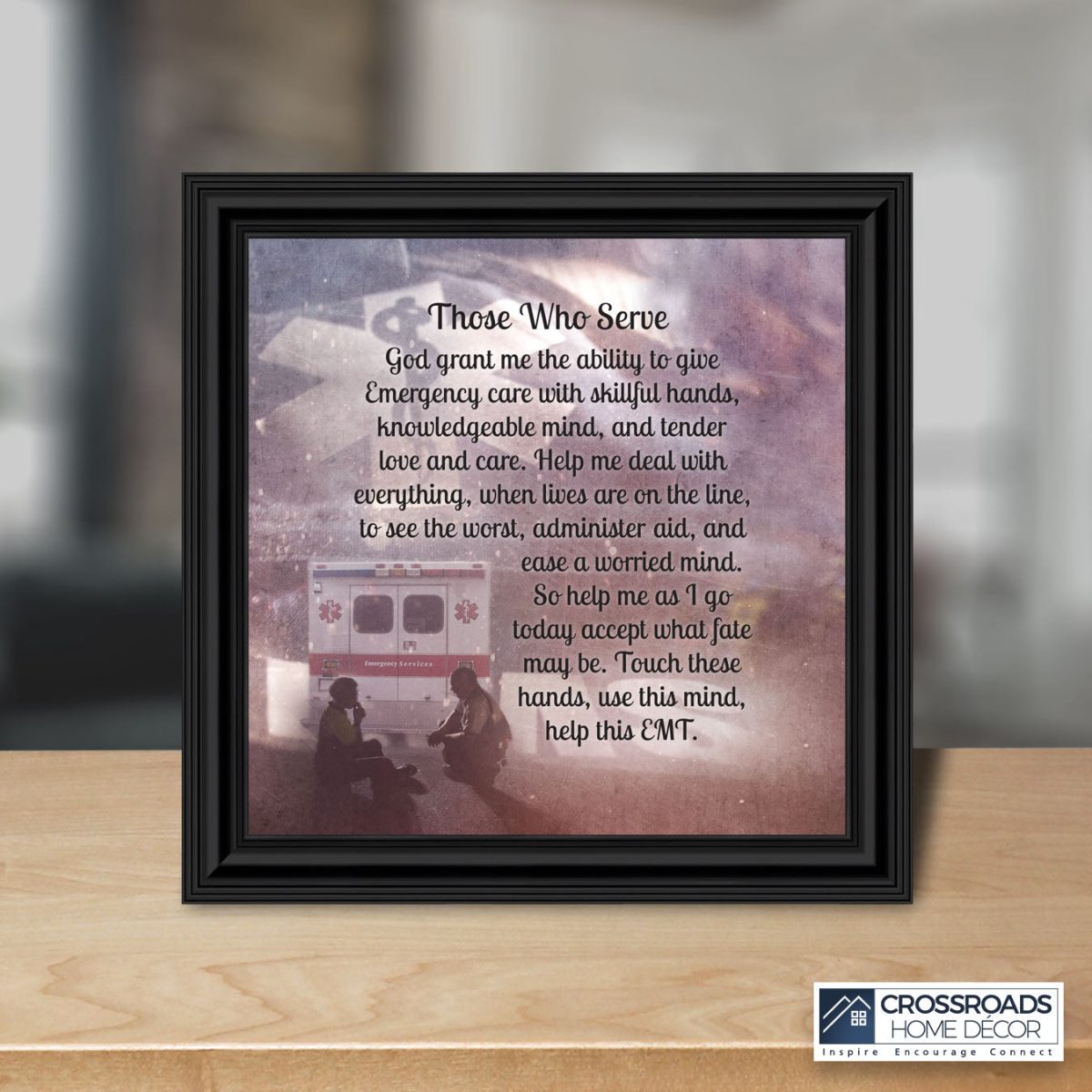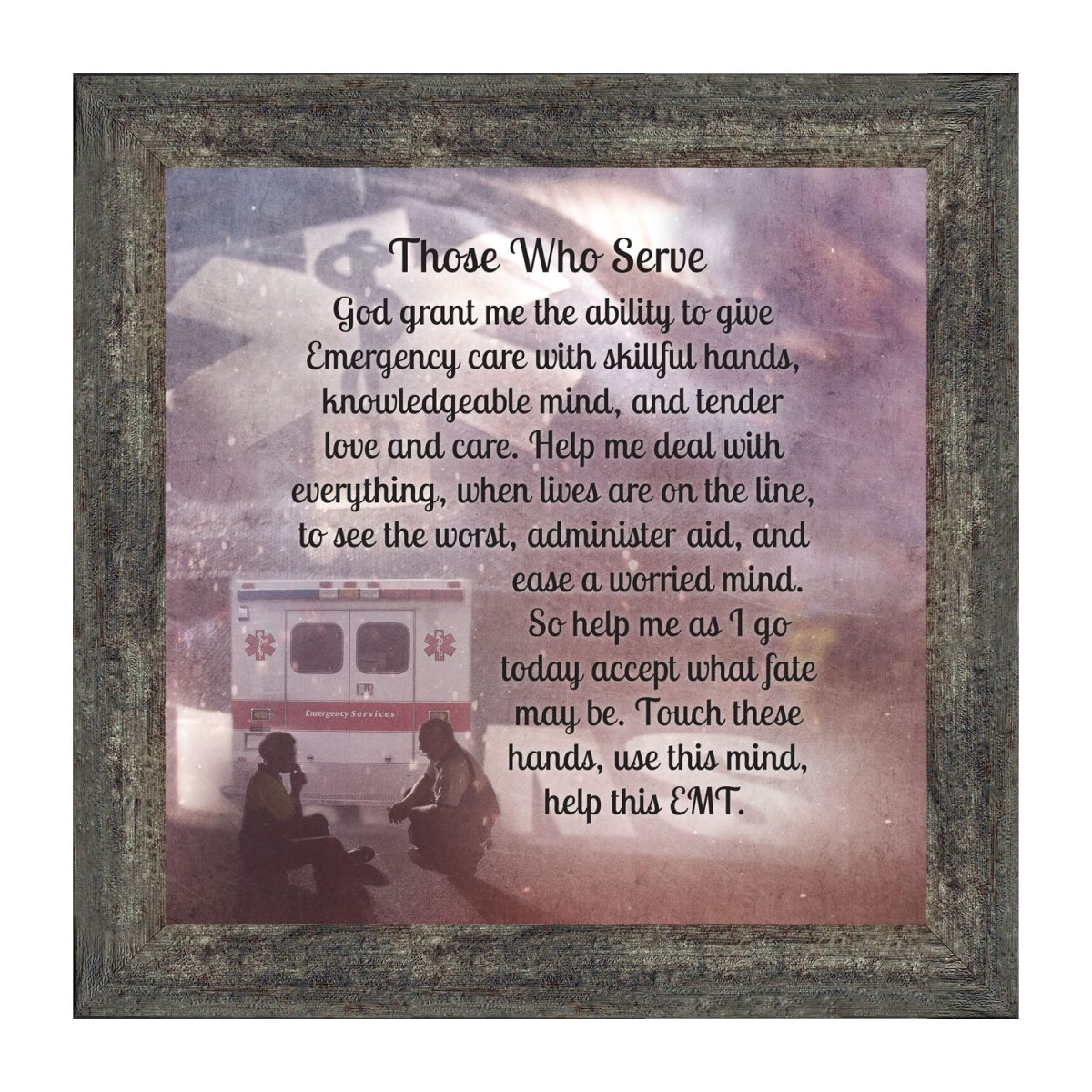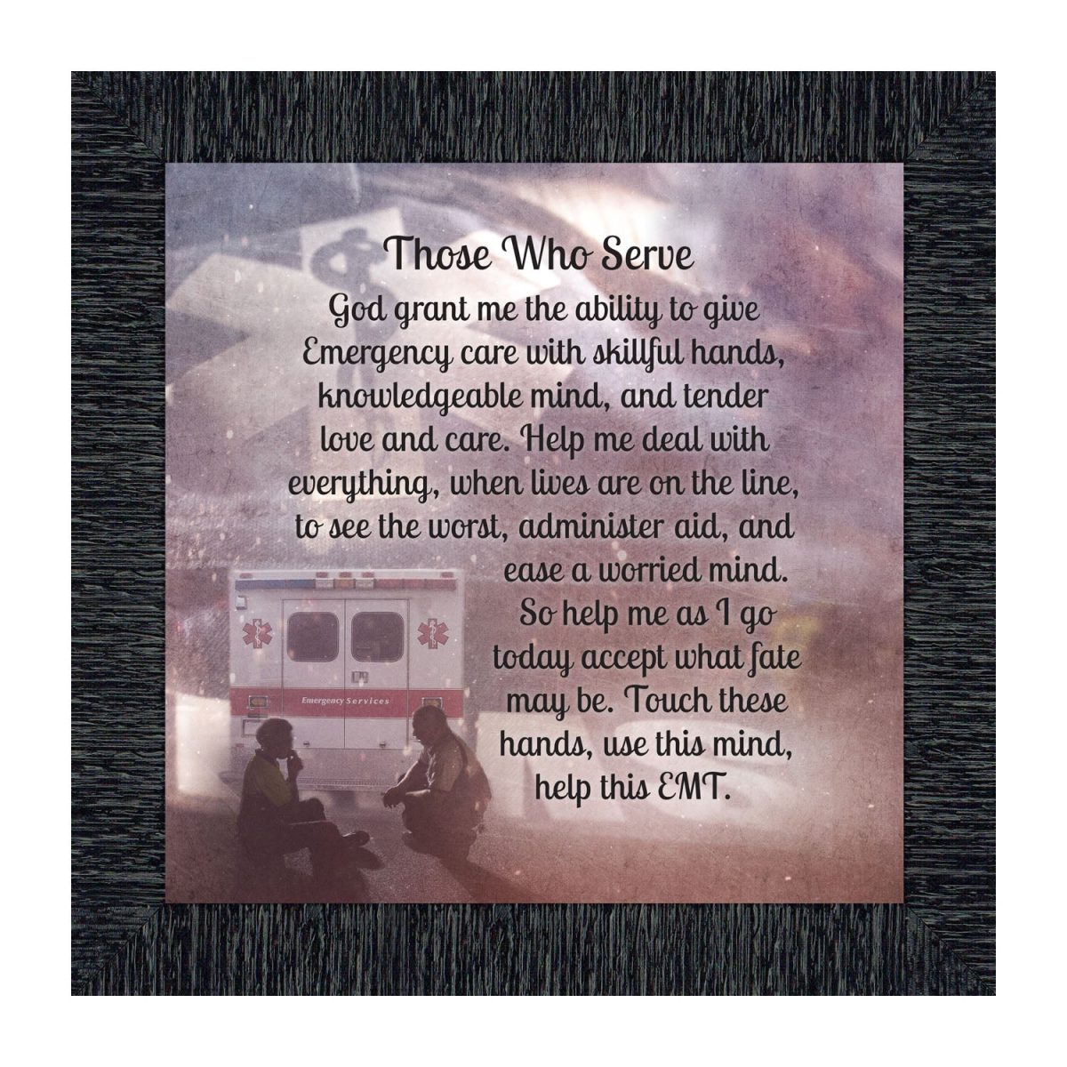 - Picture framed prayer poem for anEMT to have wisdom and kindness with his or her skills. Gift for an EMT graduate and their family.