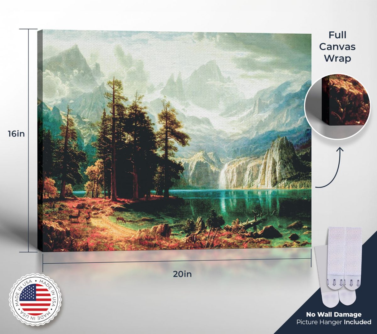 Our canvas print, inspired by Albert Bierstadt, transforms any space with its breathtaking views of mountain pictures wall decor. This piece, a jewel among fine art prints, offers a window to the sublime, embodying the spirit of exploration and wonder that defines fine art.