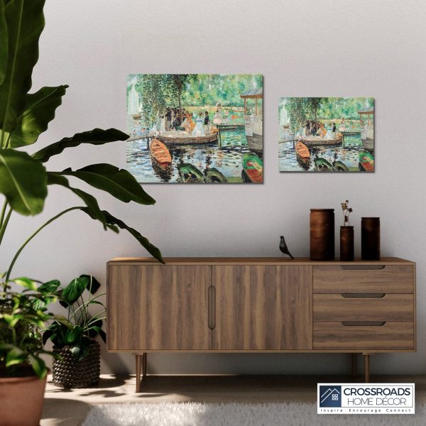 Crossroads Home Decor Famous Paintings Renior Canvas Wall Art, Fine Art Prints, La Grenouillere, The Frog Pond by Pierre Auguste Renoir, Ready To Hang for Living Room Home Wall Decor