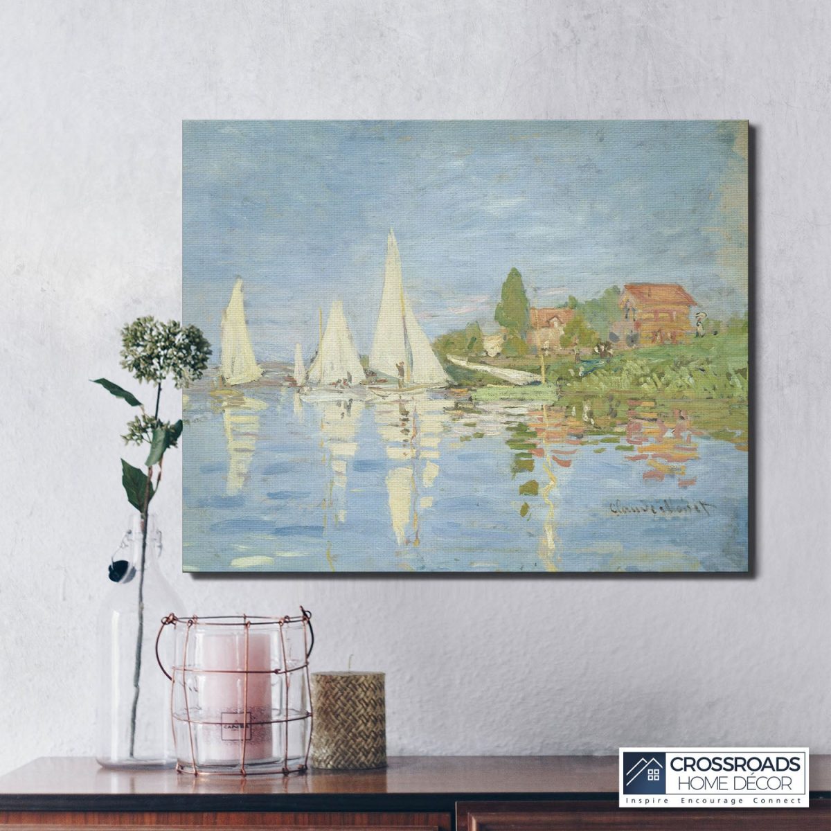 Crossroads Home Decor Famous Paintings Wall Art, Famous Art Prints, Monet Canvas Wall Art, Regattas at Argenteuil Canvas Print, Ready To Hang for Living Room Home Wall Decor