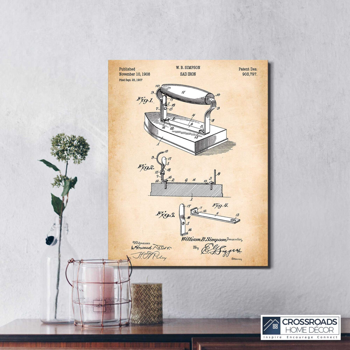 Crossroads Home Décor, Farmhouse Landry Room Décor, Patent Iron Canvas Print, Ready To Hang for Living Room Home Wall Decor