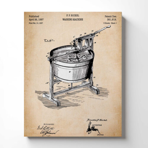 Farmhouse Laundry Room Decor, Vintage Wash Board Patent Canvas Print, Ready To Hang for Living Room Home Wall Decor,C2675