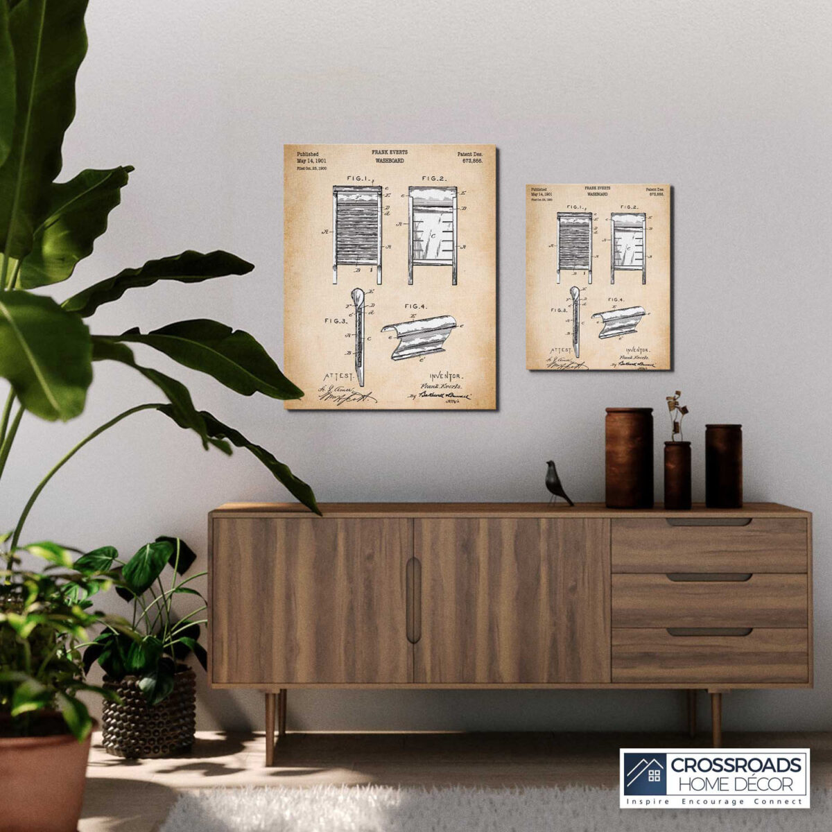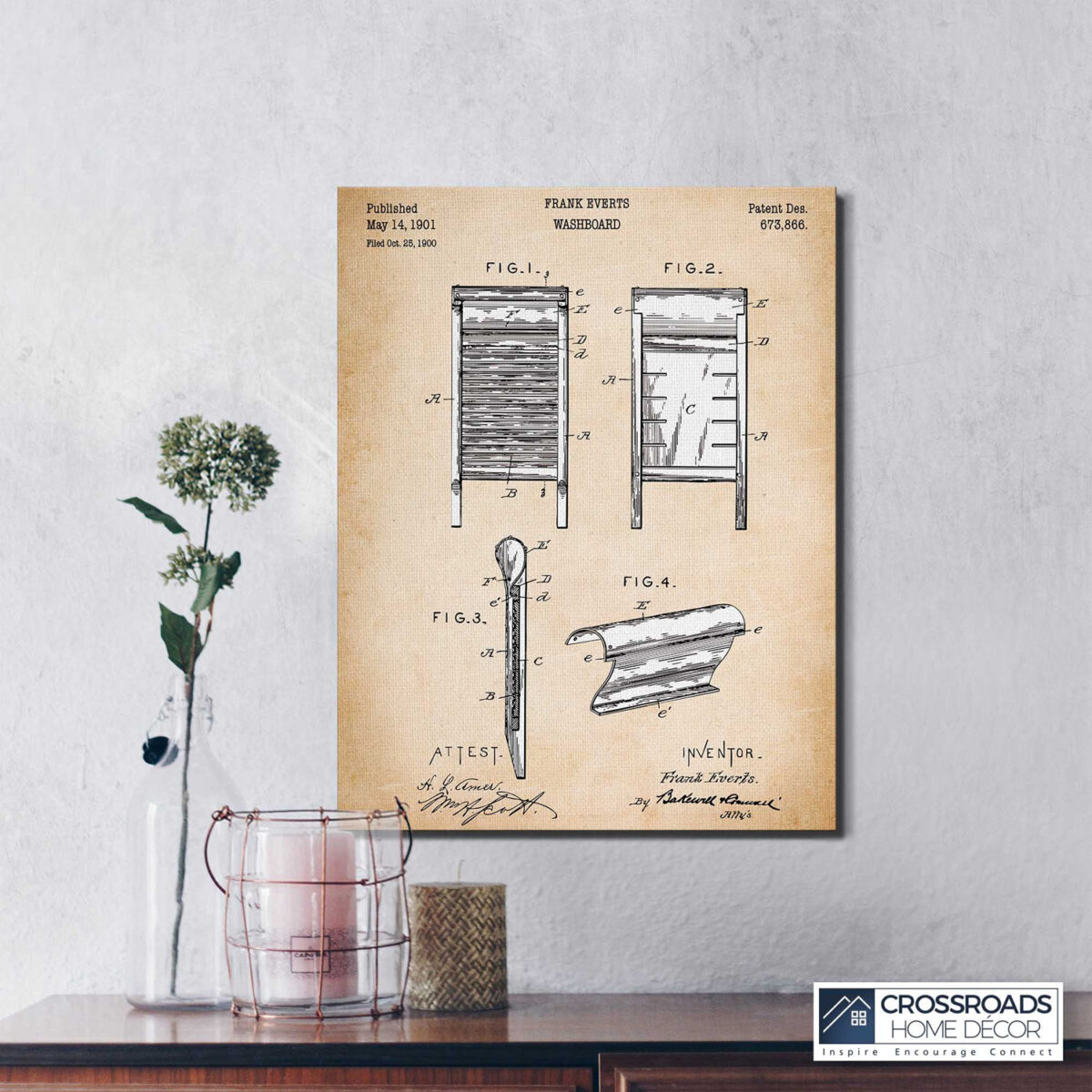 Crossroads Home Décor, Farmhouse Laundry Room Decor, Vintage Wash Board Patent Canvas Print, Ready To Hang for Living Room Home Wall Decor