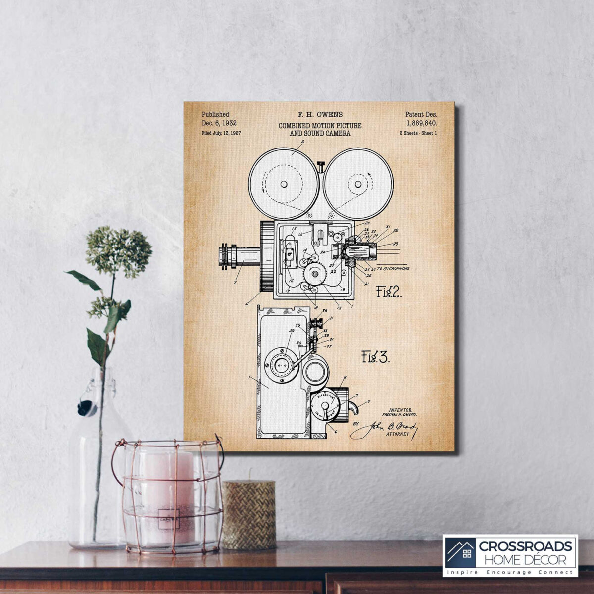 Crossroads Home Décor Film Decor, Camera Patent Canvas Print, Ready To Hang for Living Room Home Wall Decor