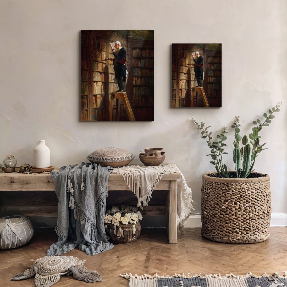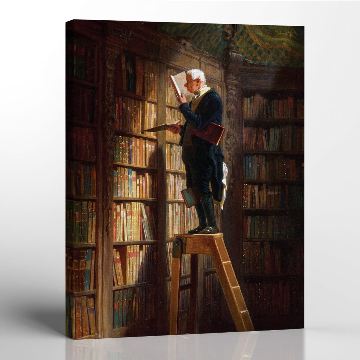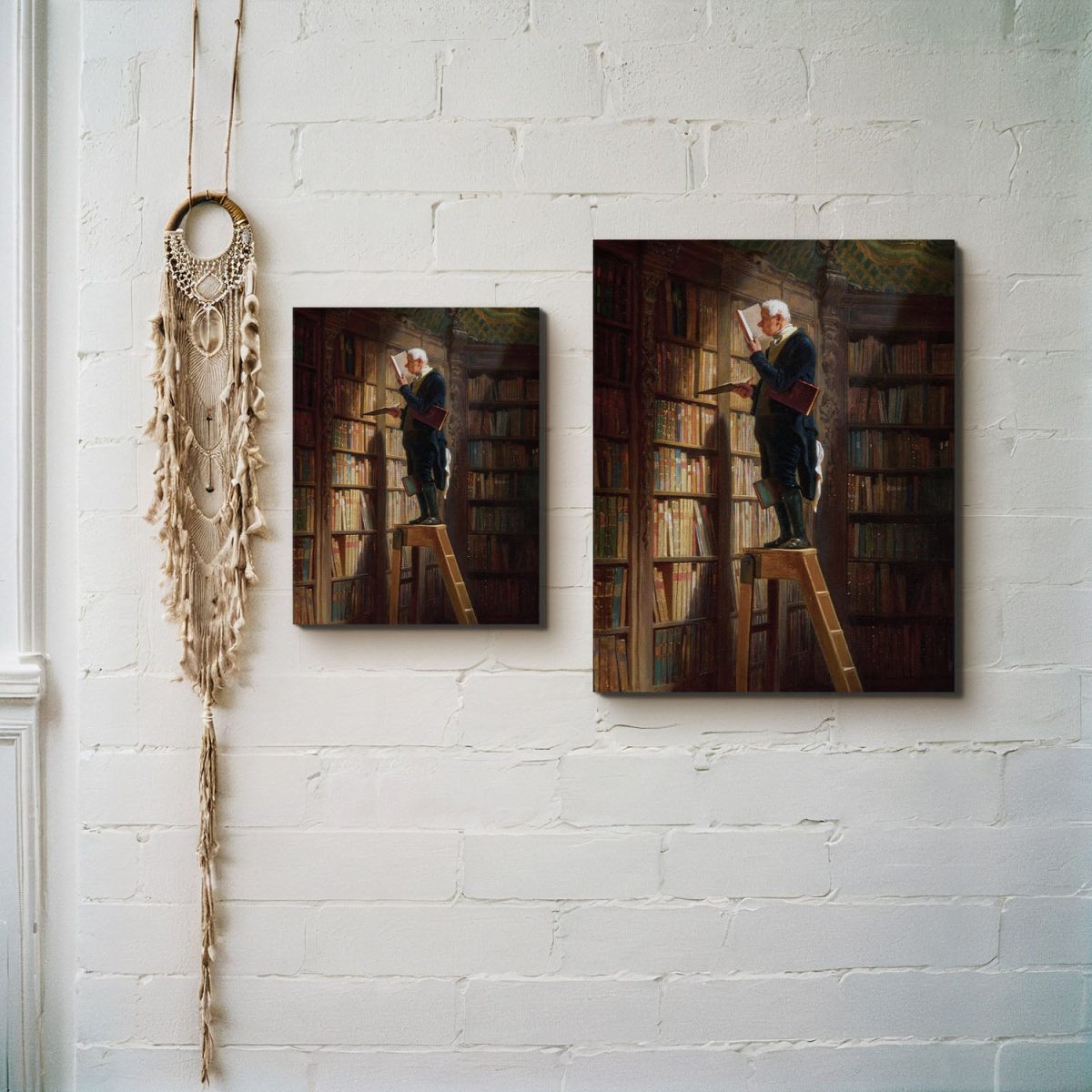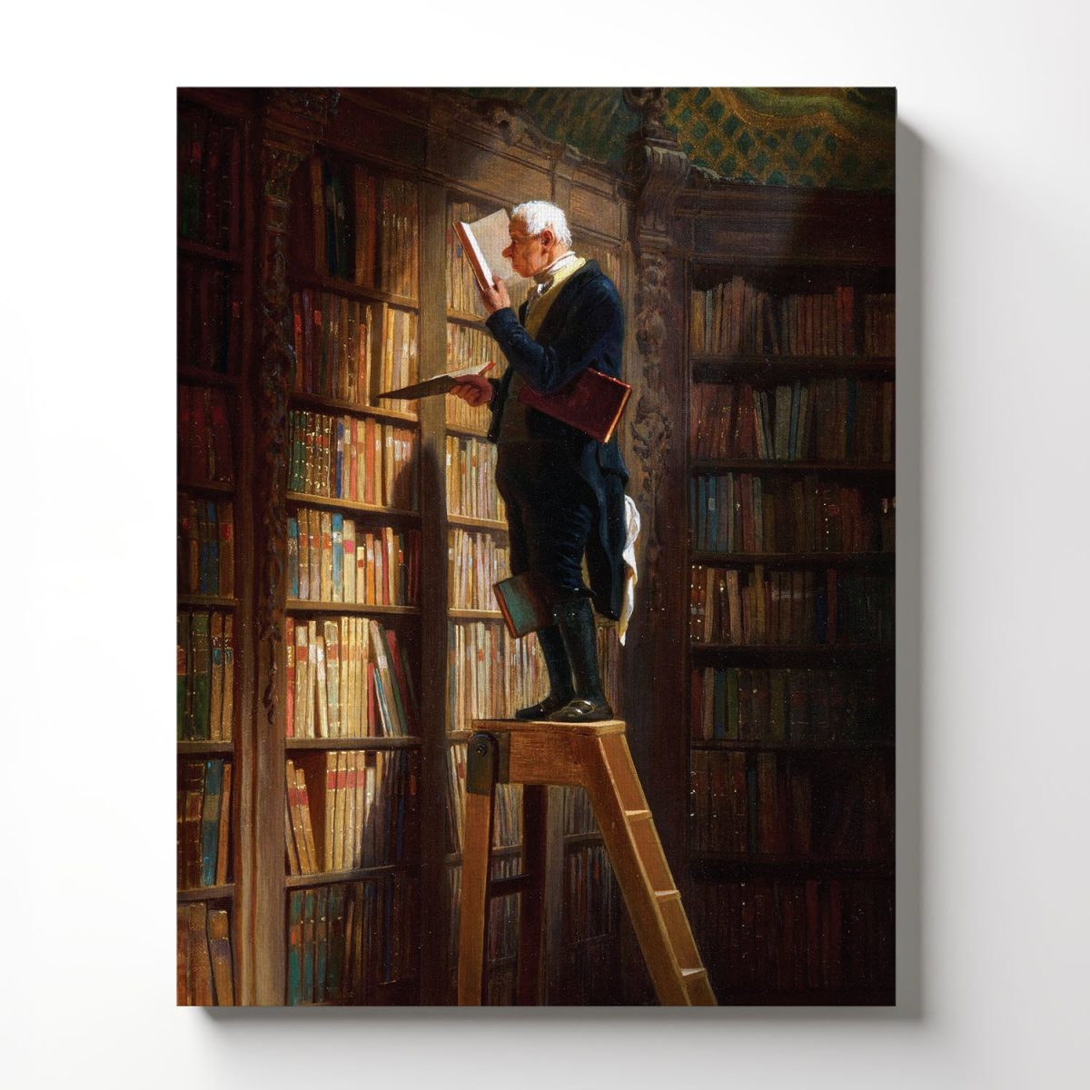 Fine Art Oil Paintings, Library Art, The Bookworm by Carl Spitzweg Canvas Print, Library Painting Fine Art, Ready To Hang for Living Room Home Wall Decor, C2412