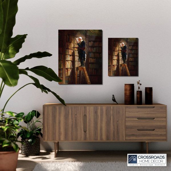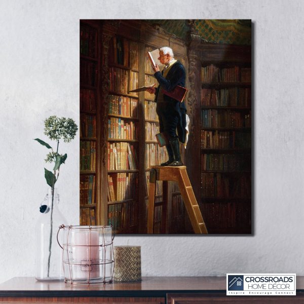 Crossroads Home Decor Fine Art Oil Paintings, Library Art, The Bookworm by Carl Spitzweg Canvas Print, Library Painting Fine Art, Ready To Hang for Living Room Home Wall Decor