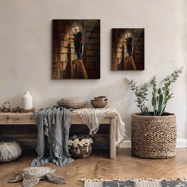 Adorn your space with the essence of intellectual curiosity with our Library art canvas print. This masterpiece, one of the fine art oil paintings in our collection, captures the timeless beauty of a bookworm lost in a world of knowledge and adventure. It’s a perfect homage to the famous paintings that celebrate the love of reading.