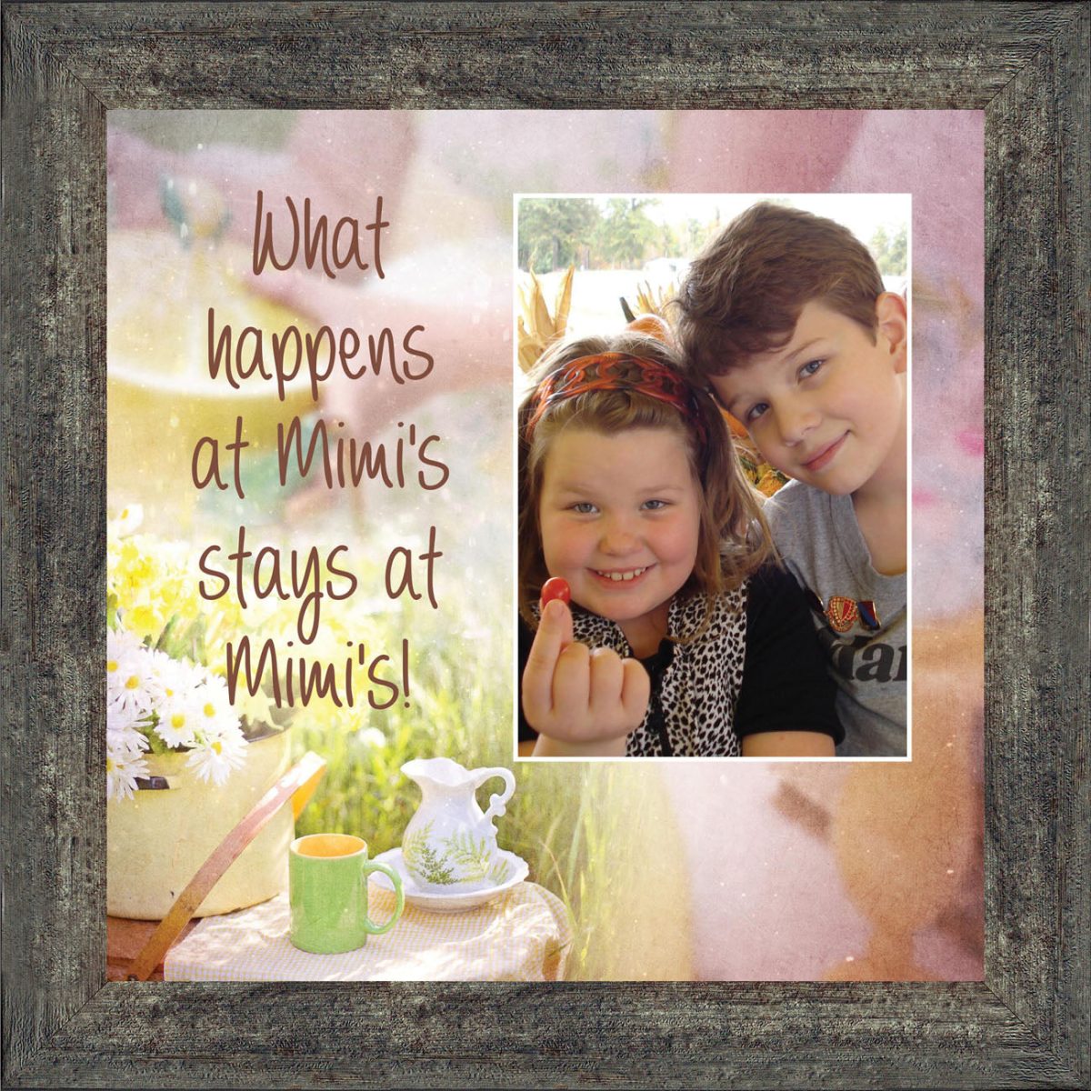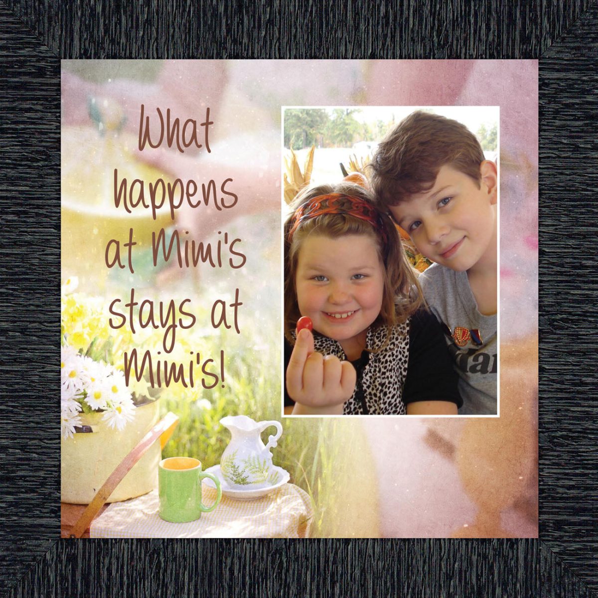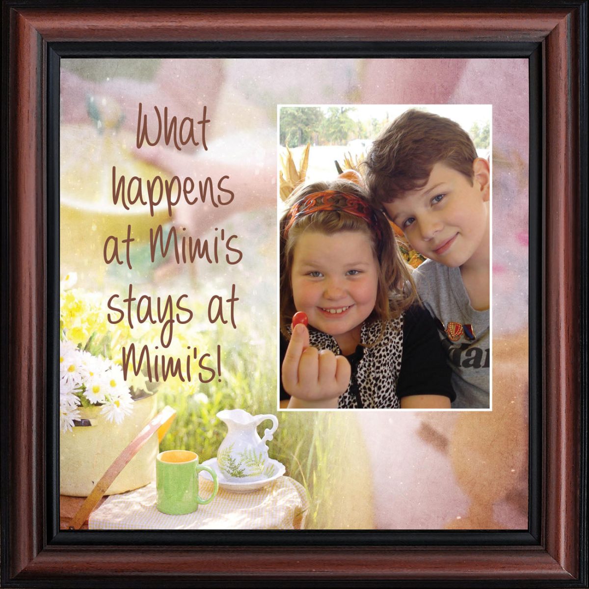 - Home decor personalized picture frame for wall or tabletop display. Includes glass front and easel back with wall hanger.