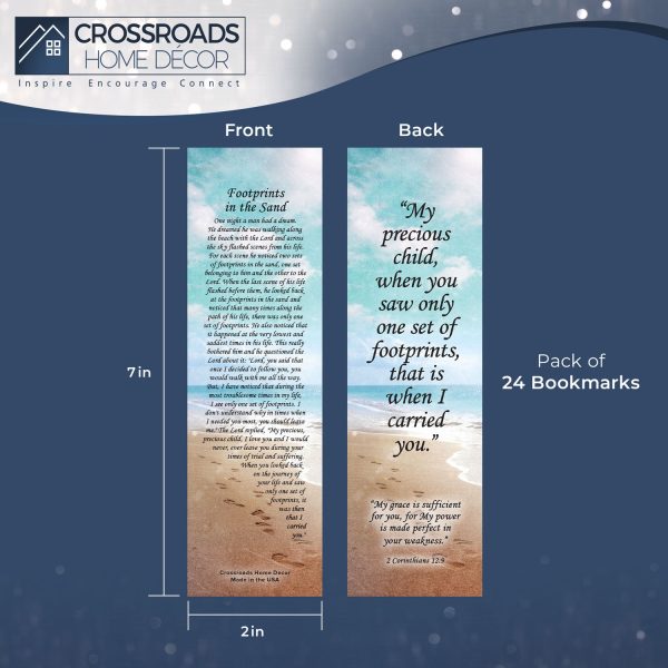 Crossroads Home Decor Footprints in The Sand Bookmark, 2-Sided, Christian Inspirational Bible Book Mark with Tassels, Bulk Religious Book Markers for Reading