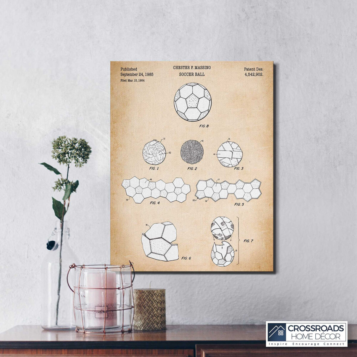 Crossroads Home Décor, Gifts for Soccer Players, Soccer Ball Patent Canvas Print, Ready To Hang for Living Room Home Wall Décor