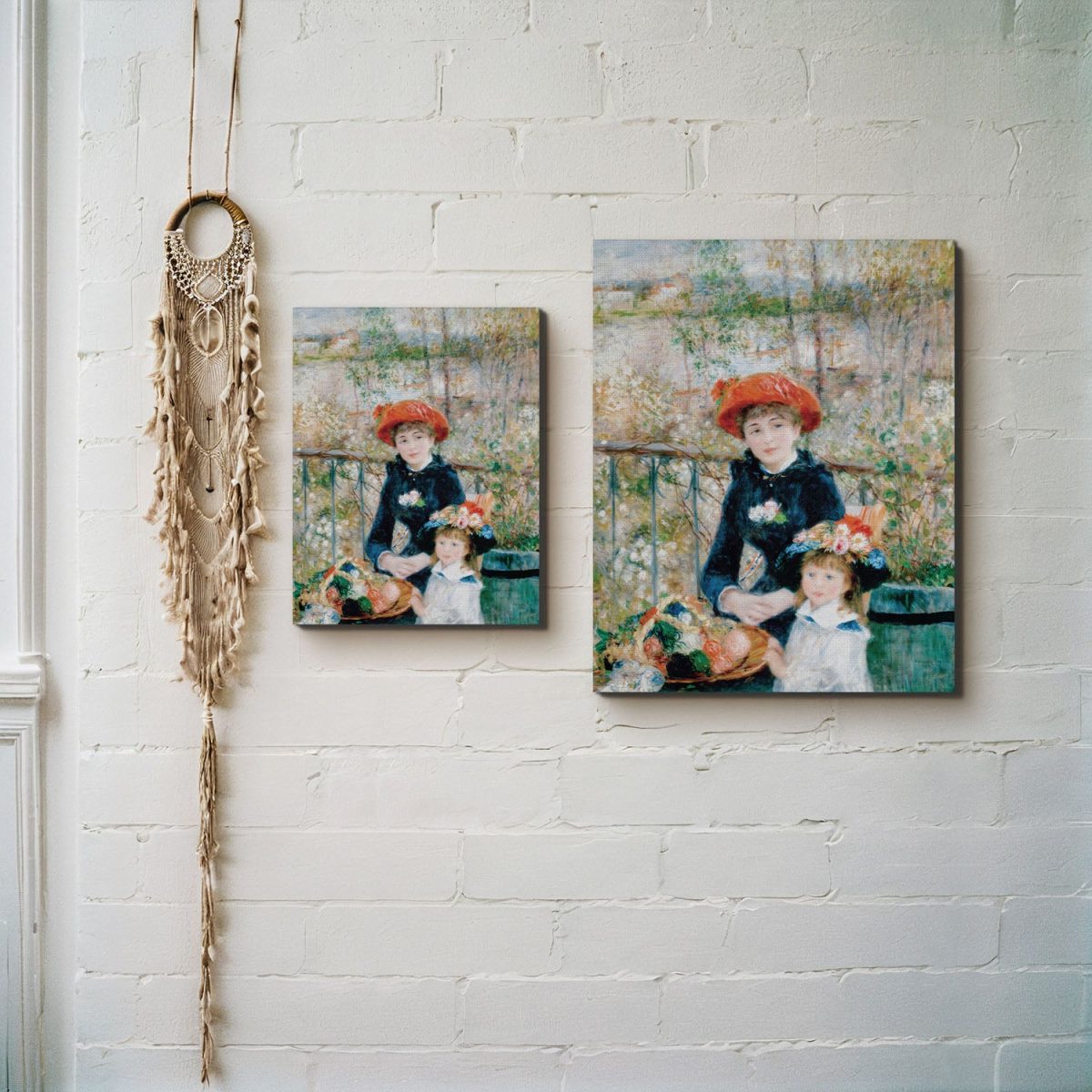 Adorn your space with the charm and warmth of Two Sisters on the Terrace canvas print, a perfect addition to girls room wall decor. This piece beautifully captures the bond and serenity between siblings, making it an ideal choice for canvas wall art for bedroom. Its vibrant colors and serene theme will transform any room into a cozy haven, reflecting the joy and purity of childhood.