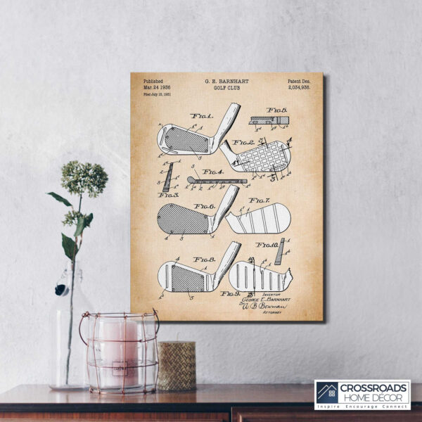 Crossroads Home Décor, Golf Gift, Golf Clubs Patent Canvas Prints, Ready To Hang for Living Room Home Wall Decor