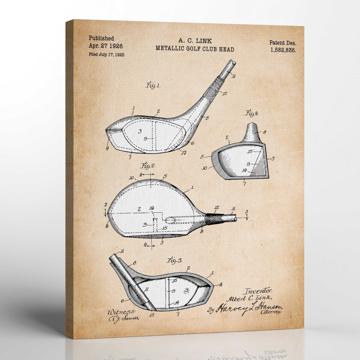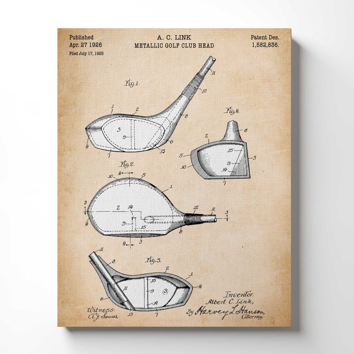 Golf Pictures Wall Decor, Golf Drivers Patent Canvas Print, Ready To Hang for Living Room Home Wall Decor, C2325c