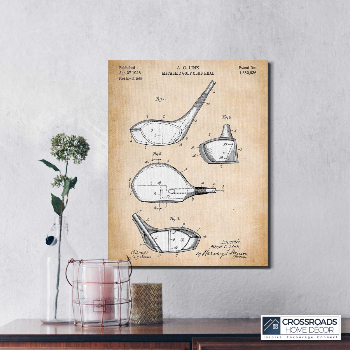 Crossroads Home Décor, Golf Pictures Wall Decor, Golf Drivers Patent Canvas Print, Ready To Hang for Living Room Home Wall Decor