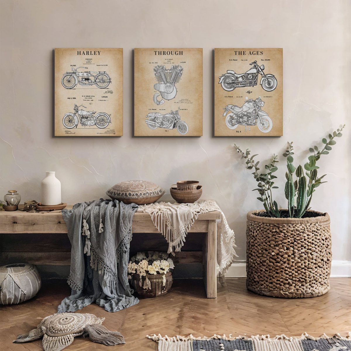 Harley Davidson Patent Canvas Frame, Harley Davidson Gifts for Men, Harley Davidson Gifts for Women, Motorcycle Wall Art,Ready To Hang for Living Room Home Wall Decor, C2139