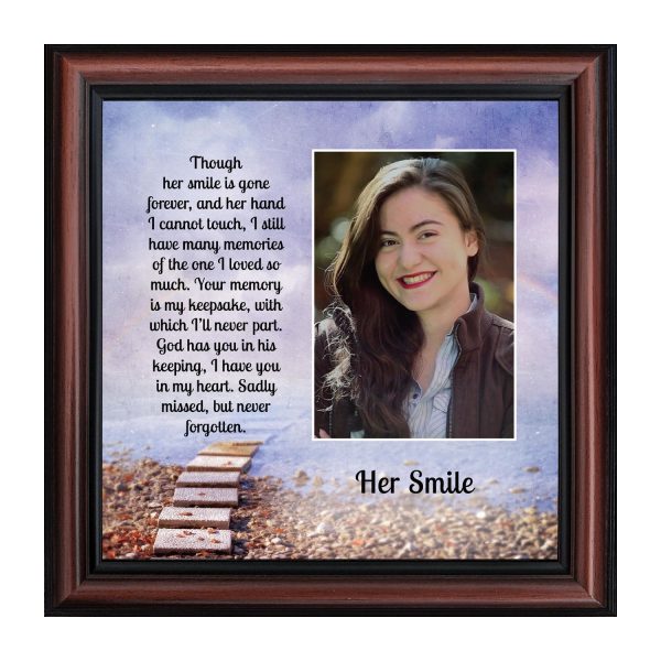 Sympathy Gifts for Loss of Mother, Condolence Gift, In Loving Memory Memorial Gifts for Loss of Wife, Mom, Grandma or Sister, Bereavement Gifts to Remember Her Smile, Memorial Picture Frame