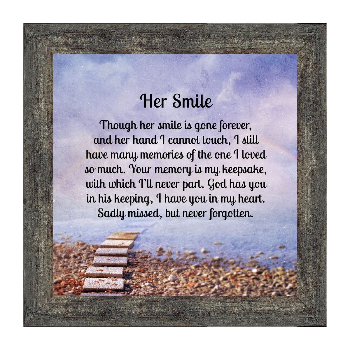 BEAUTIFUL SYMPATHY GIFTS for loss of mother, grandmother, wife or daughter or sister. Remember their beautiful smile with these comforting words. A very unique way to express your heartfelt condolences that honor a friend or loved one. When words are hard to find, use these comforting thoughts to convey your care and concern.