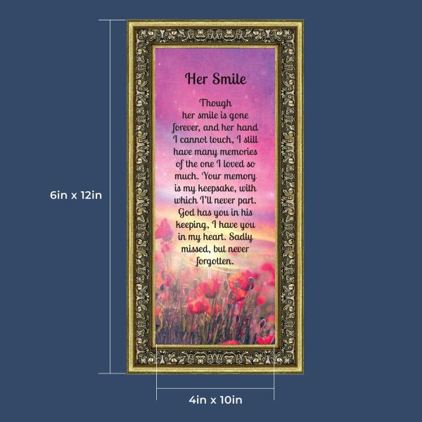 BEAUTIFUL SYMPATHY GIFTSfor loss of mother, grandmother, wife or daughter or sister. Remember their beautiful smile with these comforting words. A very unique way to express your heartfelt condolences that honor a friend or loved one. When words are hard to find, use these comforting thoughts to convey your care and concern.