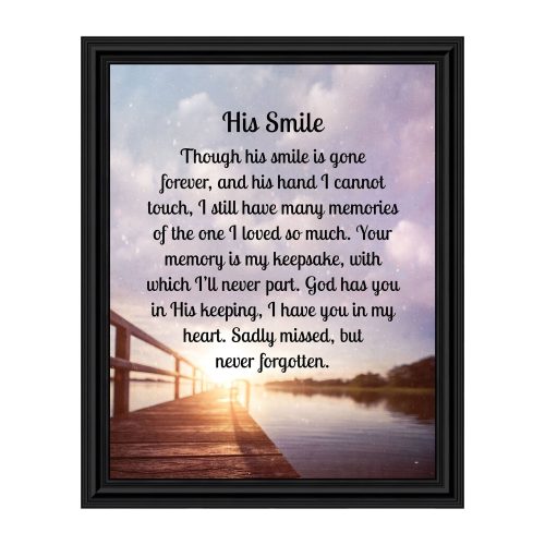 THIS MEN’S “HIS SMILE” SYMPATHY GIFT is crafted for those who are grieving the loss of a husband, father, grandfather, son, or male friend. See our “HER SMILE” sympathy gifts that honor a wife, mother, grandma, or daughter or a female friend. Each frame will capture the smile and spirit of the loved one who has passed away.
