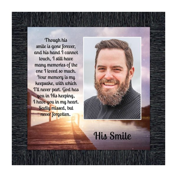 Sympathy Gifts for Loss of Husband, Memorial Gift, His Smile In Memory of Loved One, Picture Frames for Sympathy Gift Baskets, Bereavement Gifts for Loss of Father, Loss of Son Condolence Gift , 6361