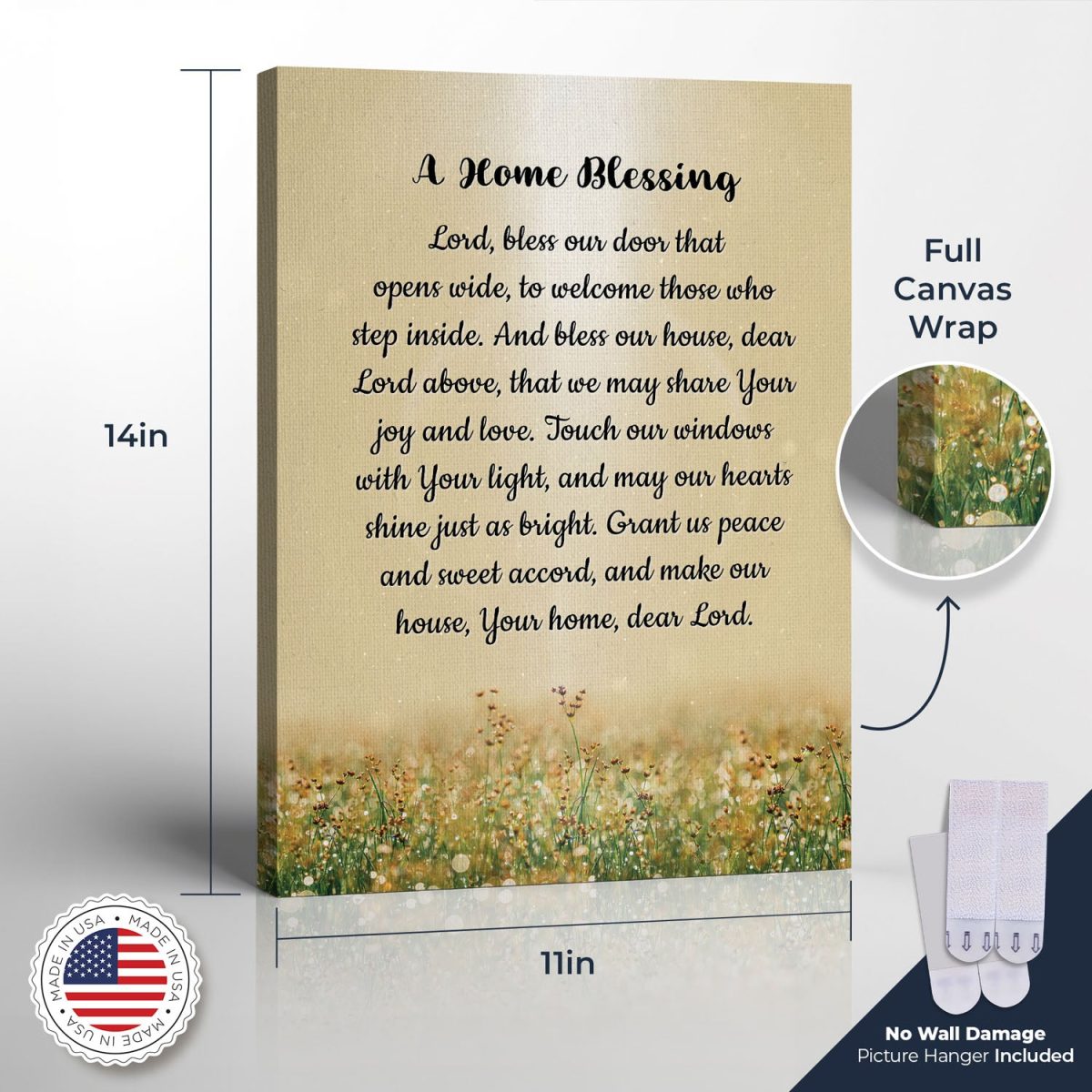 Ready to Hang with No Wall Damage Picture Hanger Included. No hammers, nails or screws required! High-definition printing on poly-cotton matte canvas creating a vibrant and rich colors piece for your wall. The canvas is gallery wrapped onto our 11×14 wooden frame. Made in our family workshop in Northeast Ohio. Item is carefully packed with bubble wrap ensuring its safety during shipping. Proudly Made in the USA!